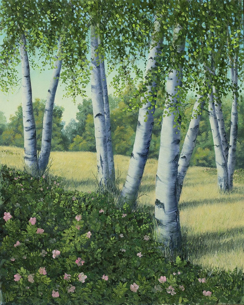 - Subject Matter: Landscape, woods, birch, trees, rose, fields, spring