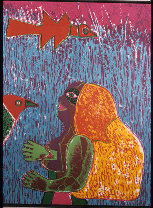 The Woman with Painted Eyelids lends her roundness to the hard blades of grass