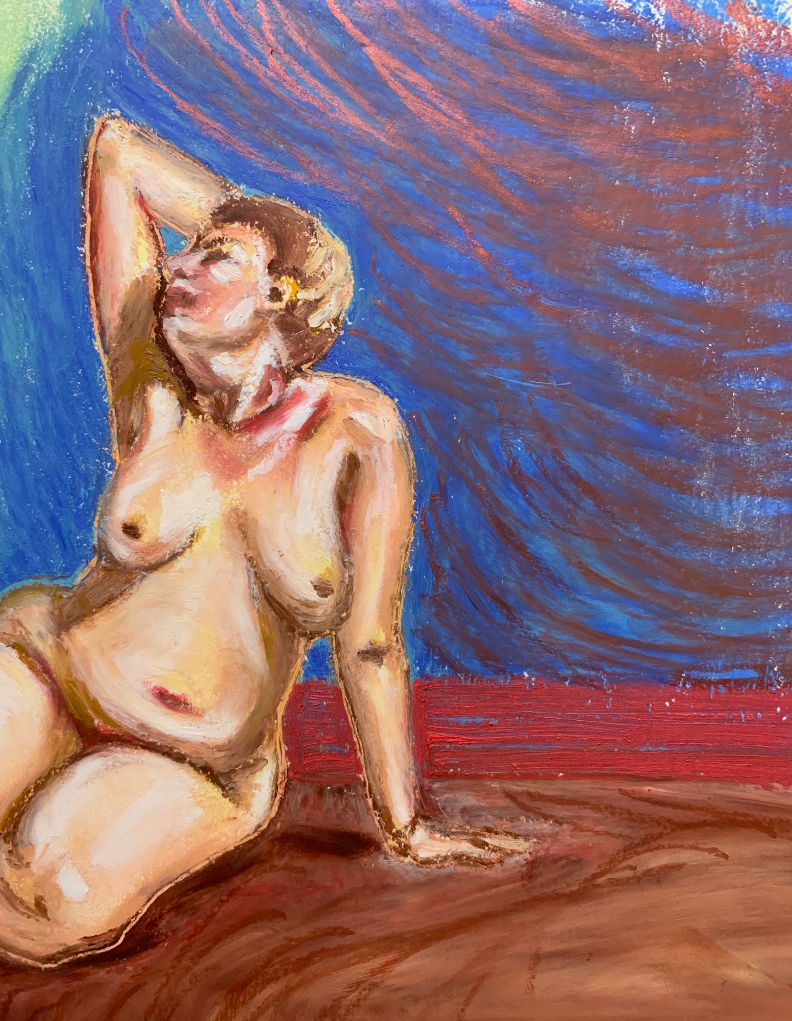 Le Reve, (The Dream) is a reflective and meditative pastel on paper. She is the dreamer.