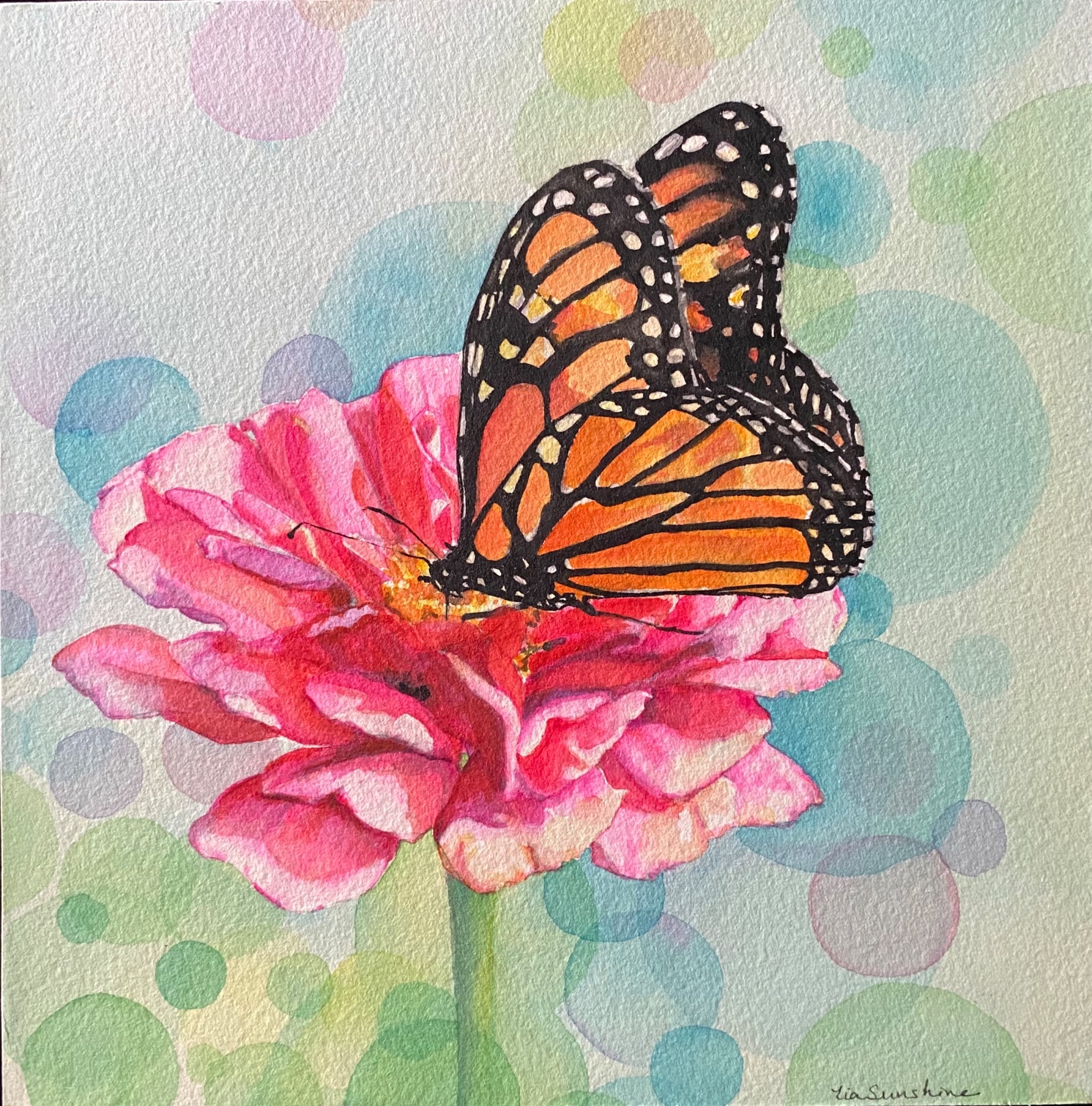 Watercolor on Arches cold press watercolor paper. Mounted onto a 1.5" deep cradled panel, waxed and framed in a black floater frame.