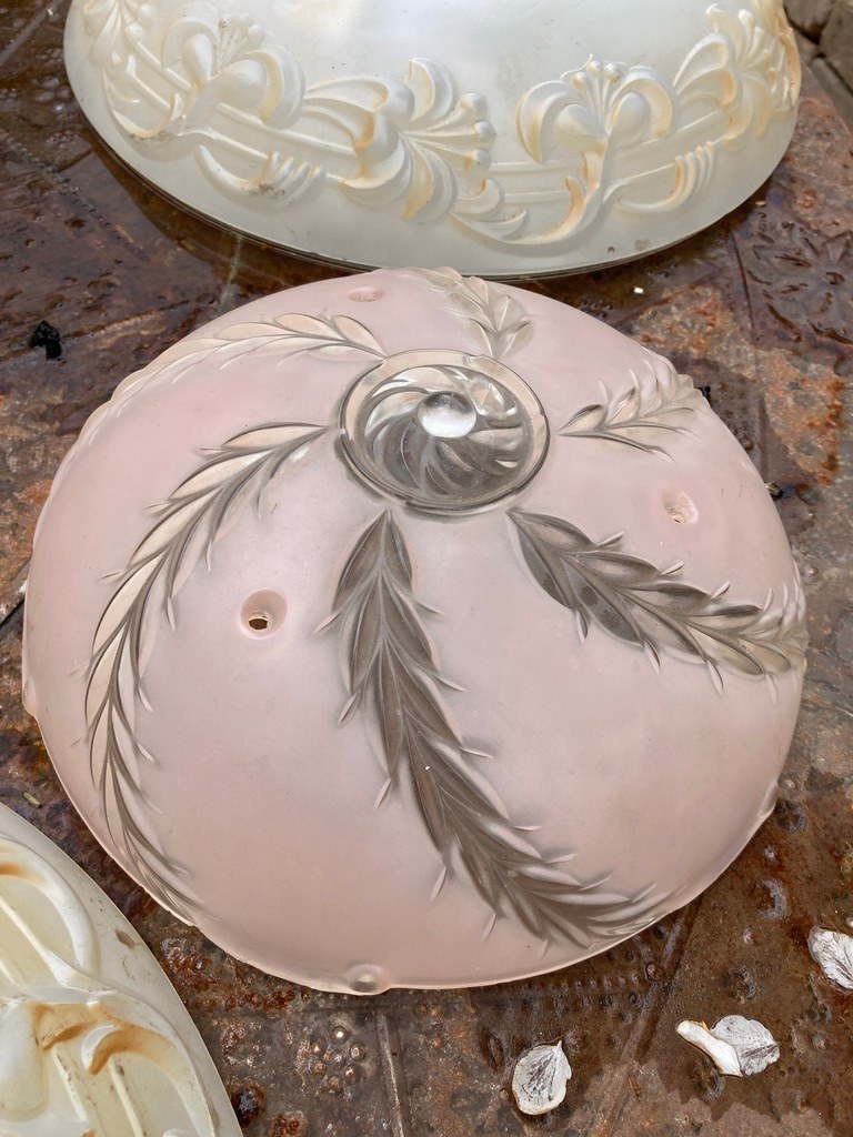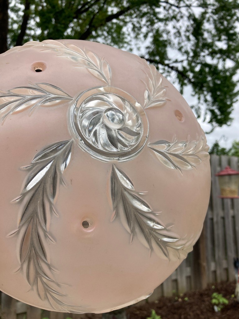 1940's ceiling fixture ~ frosted pink pattern