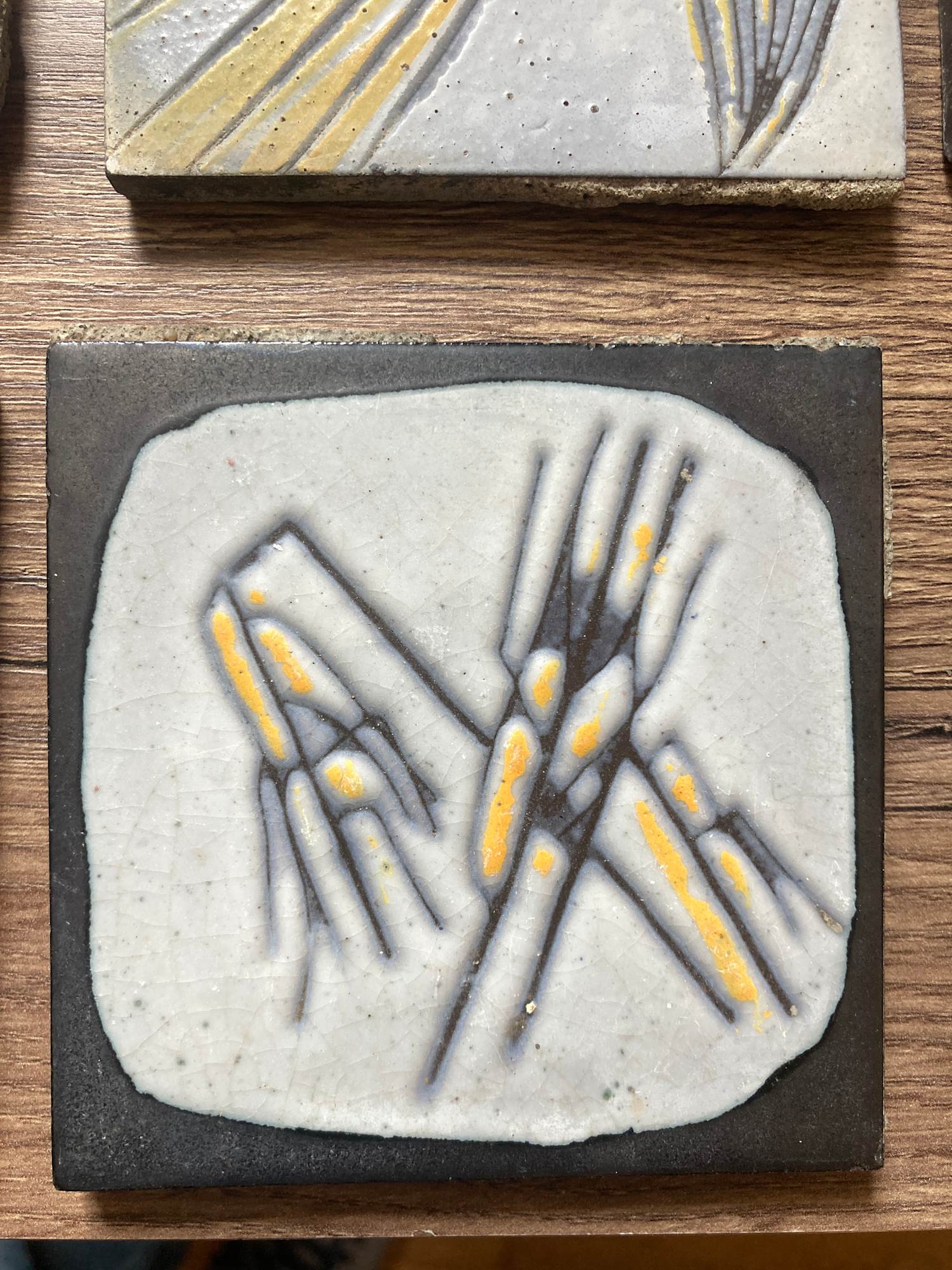 1960's Hand painted modern style tile by Roger Capron ~ wheat