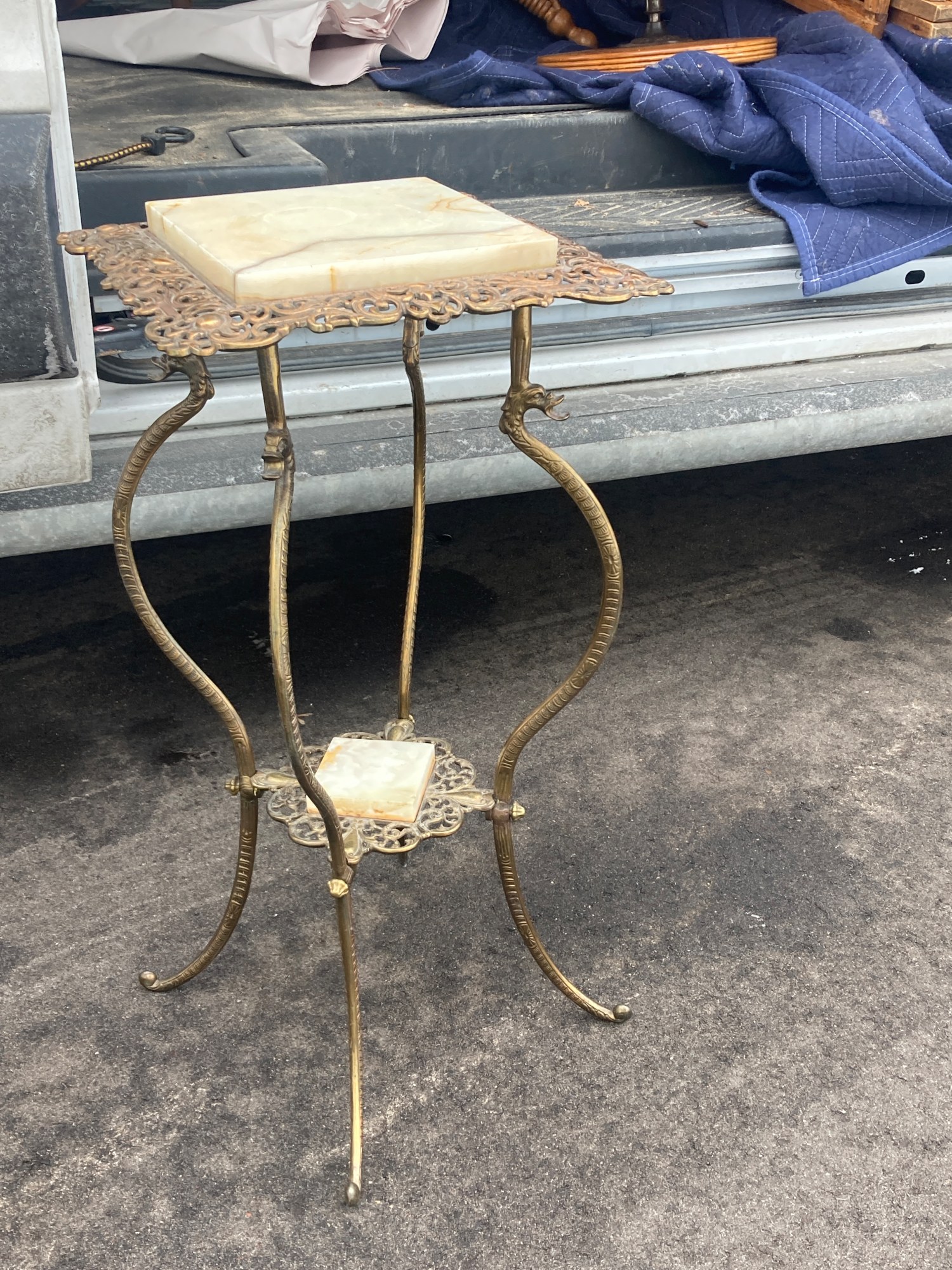 2 tiered onyx and metal fern stand