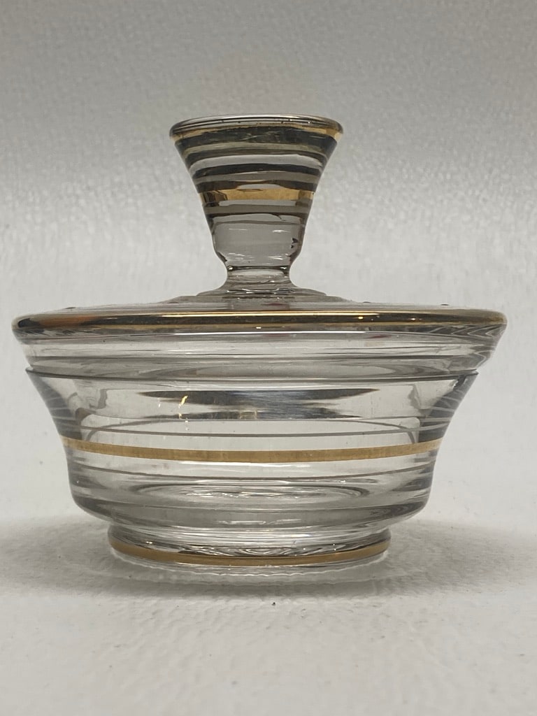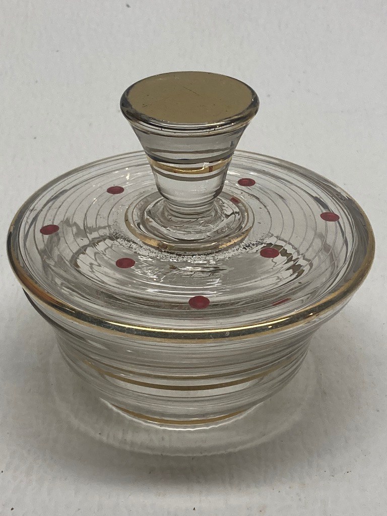 Art Deco hand painted gold with red dots perfume powder dish