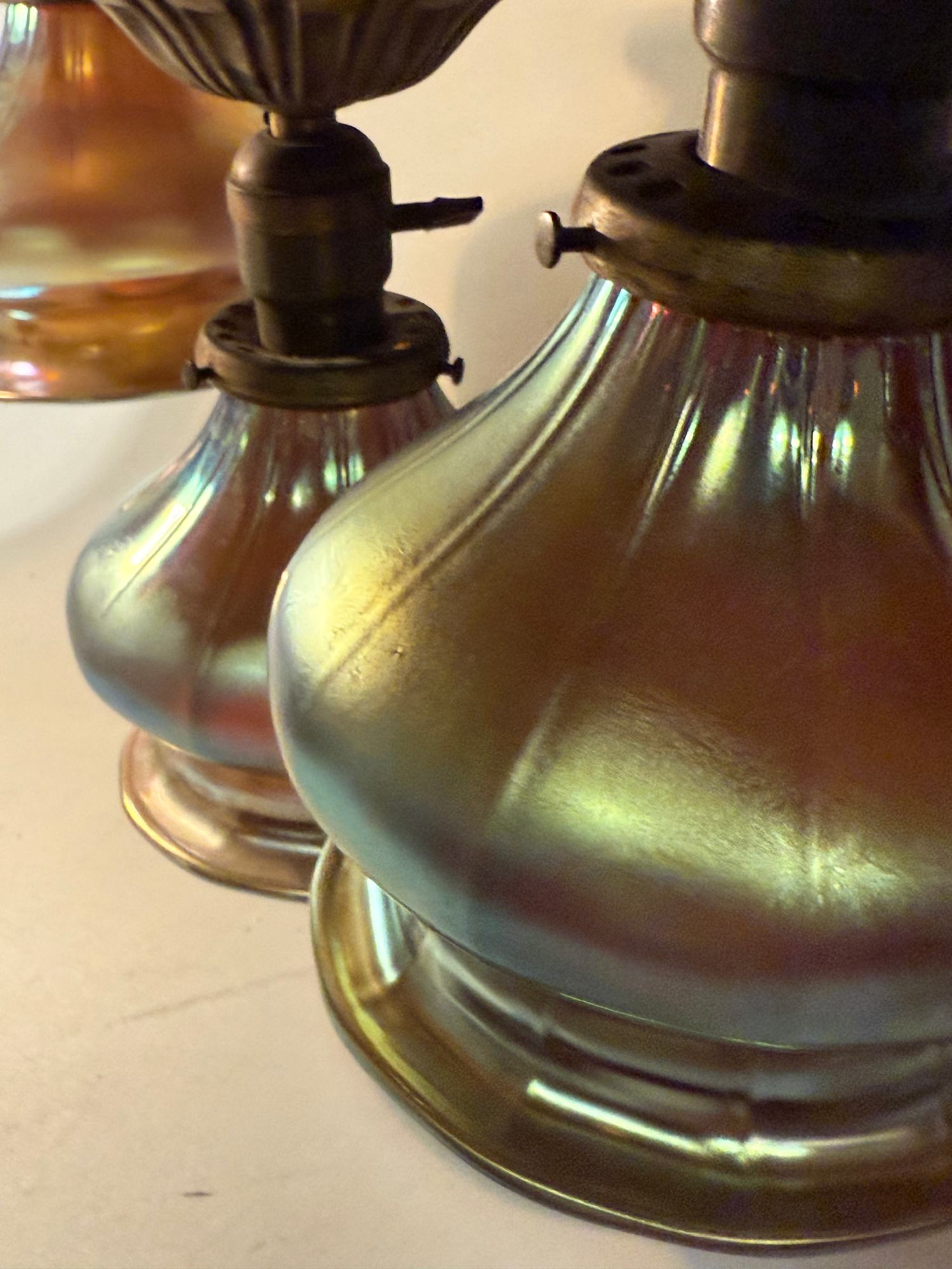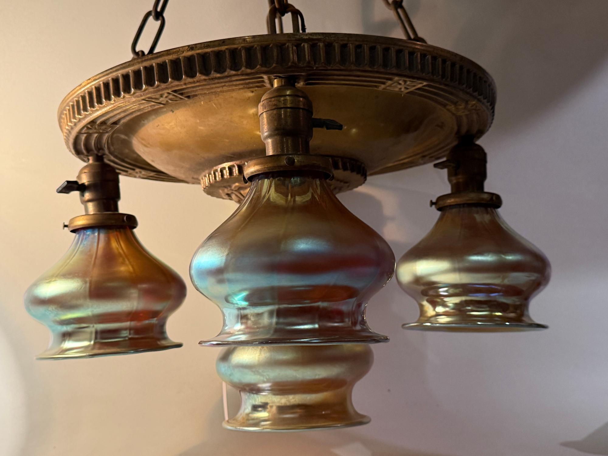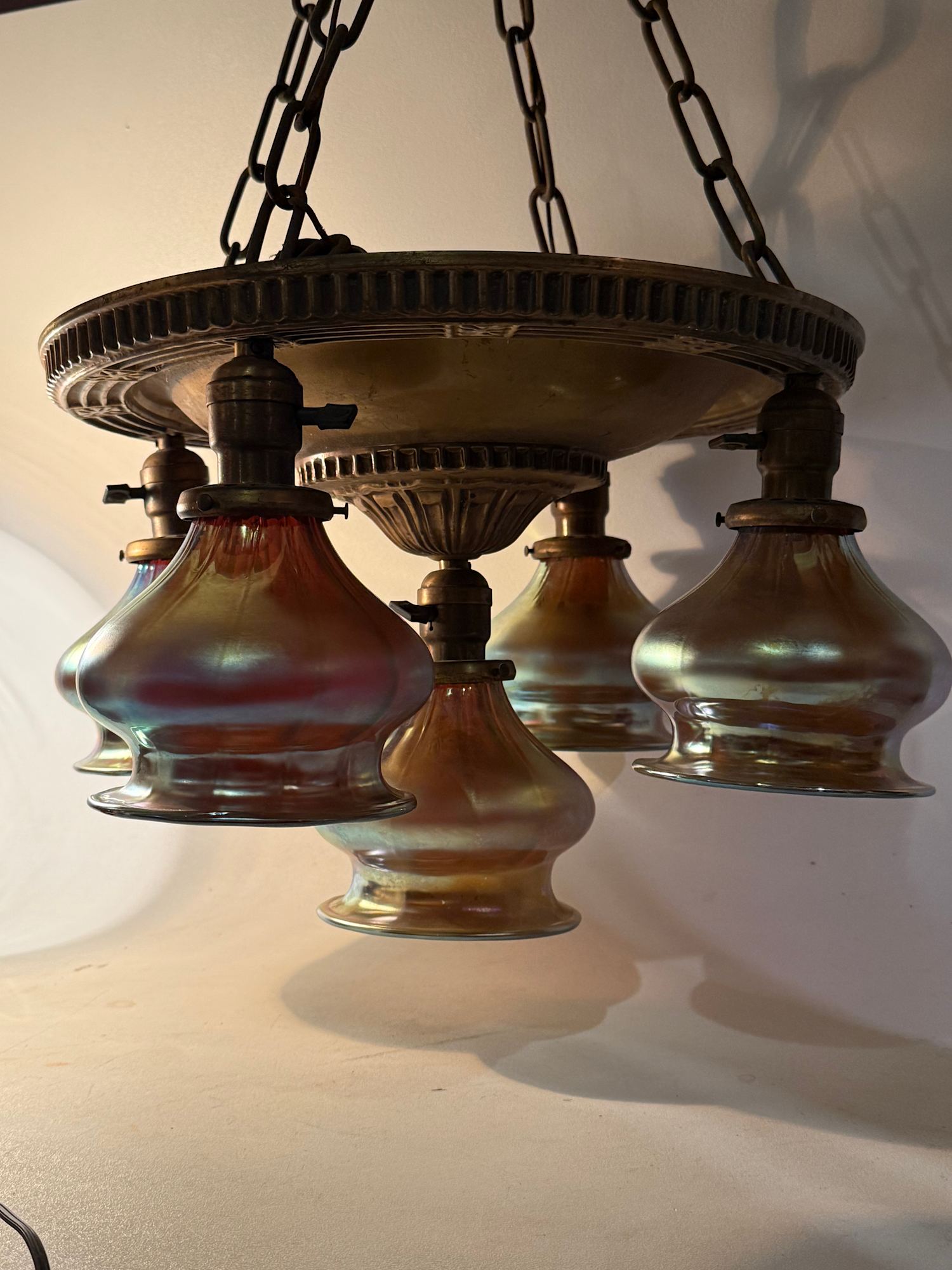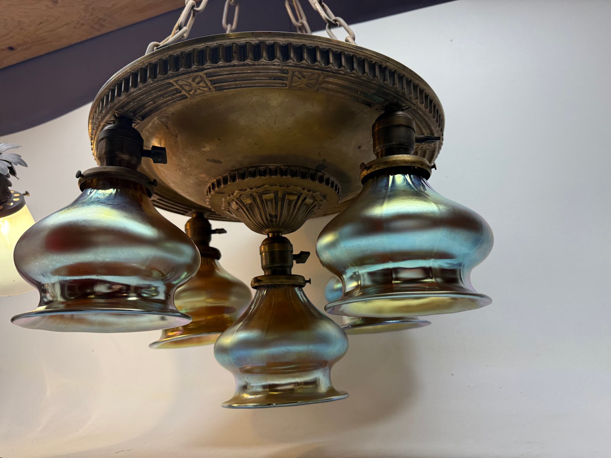 Arts and Crafts era 5 light chandelier with hand blown shades