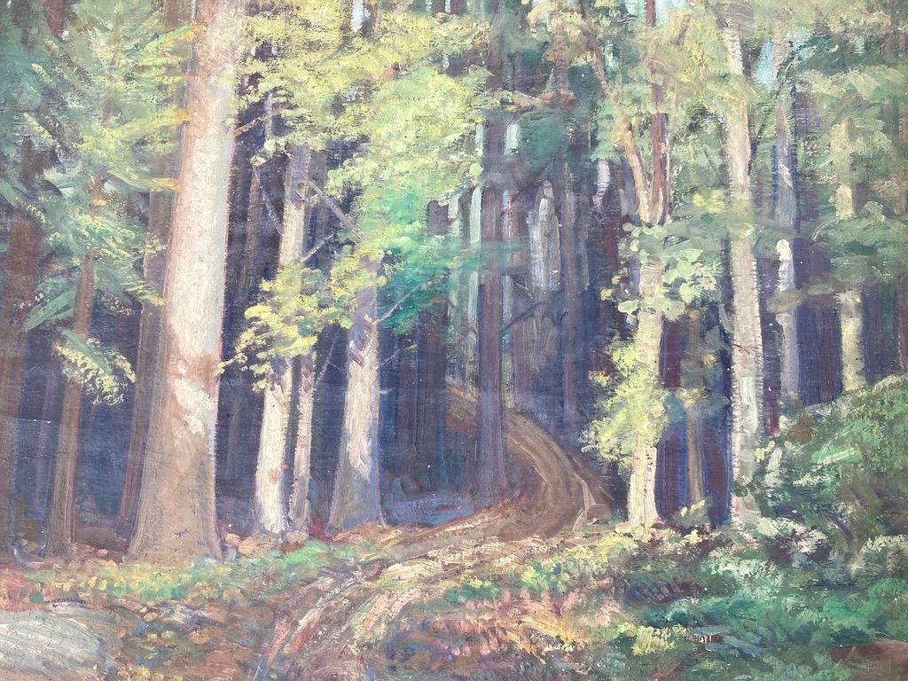 Carl G. T. Olson original painting of a forest scene with path on canvas #175