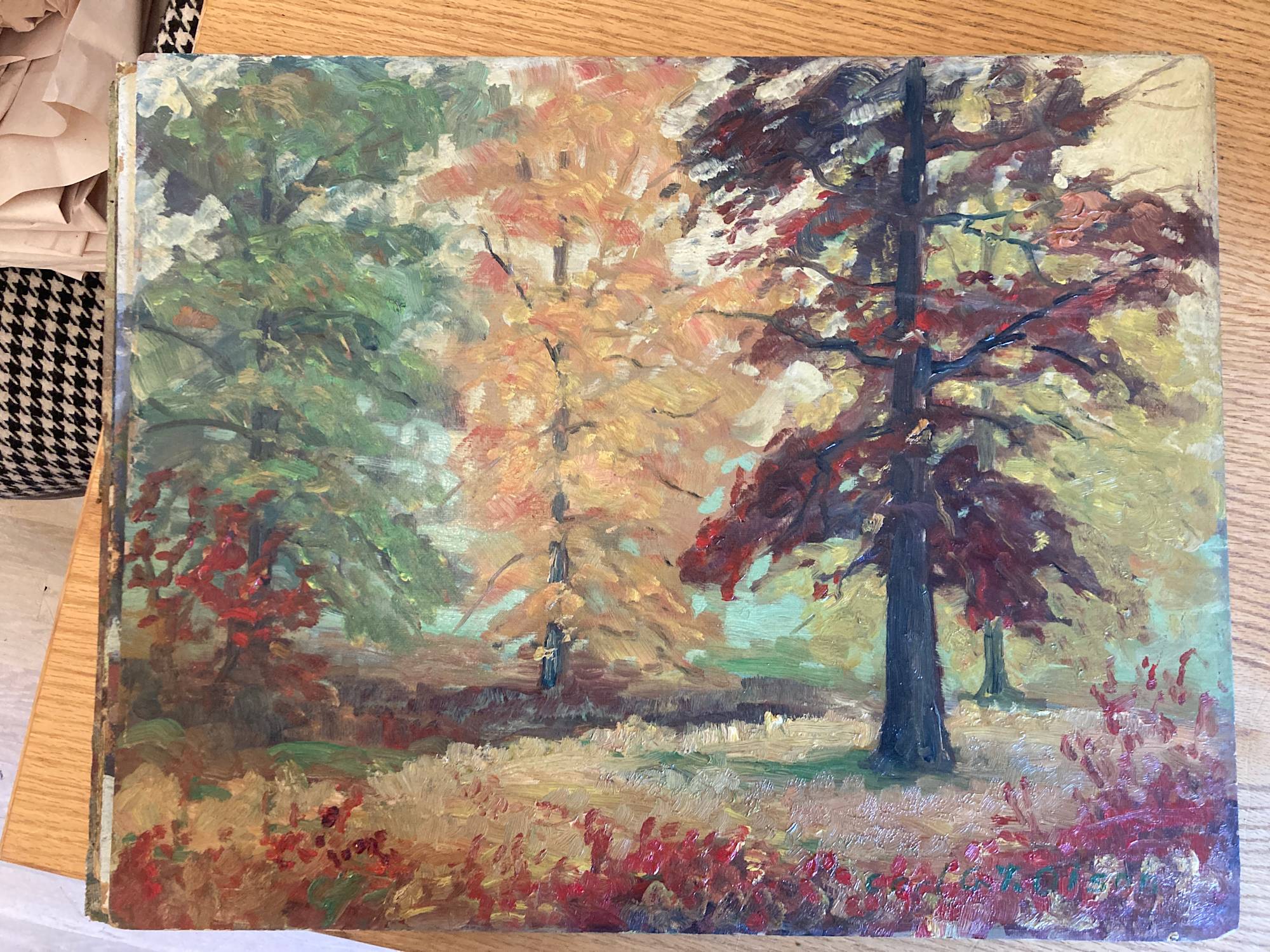 • Carl G. T. Olson original painting on board fall landscape #107