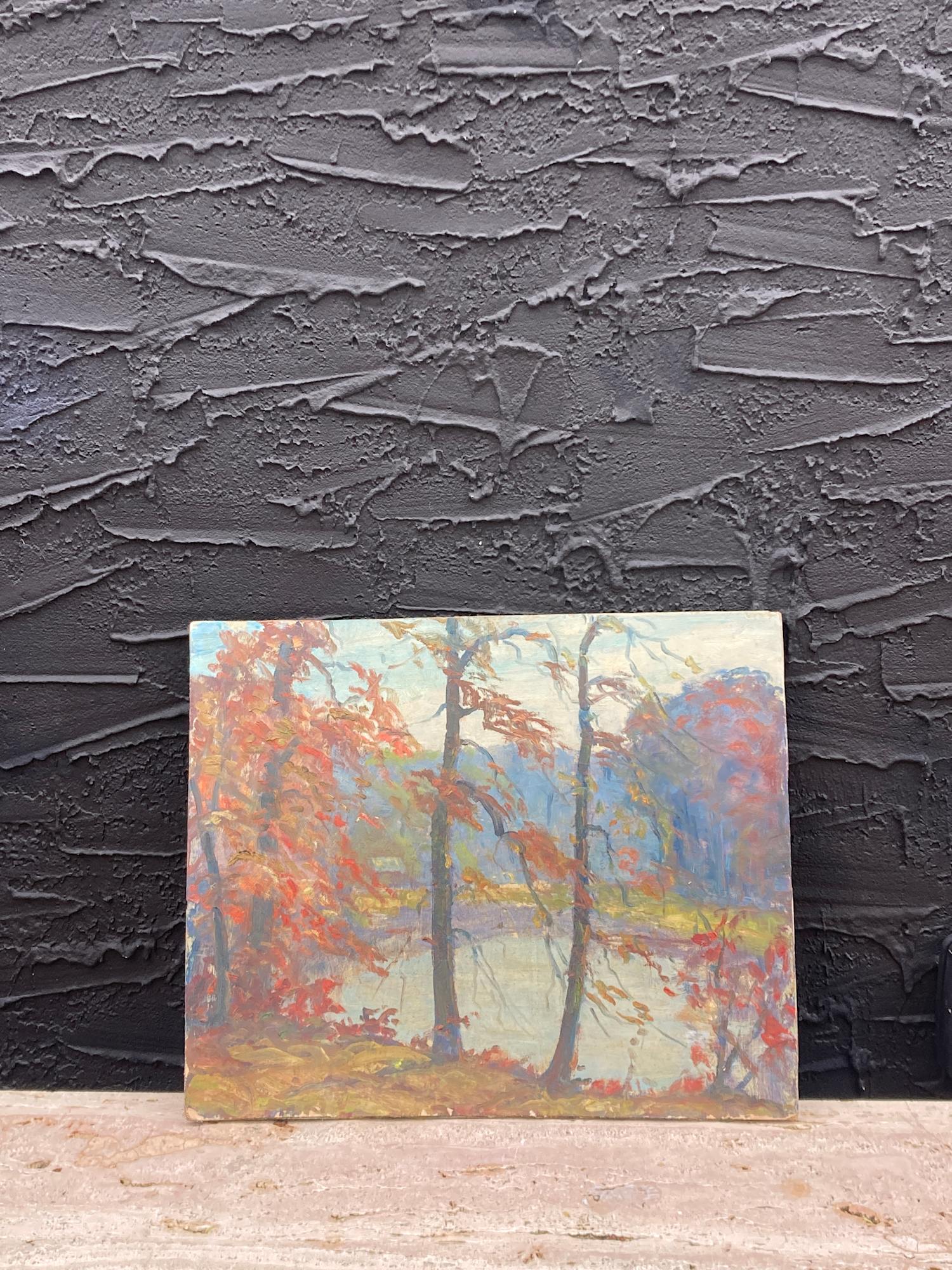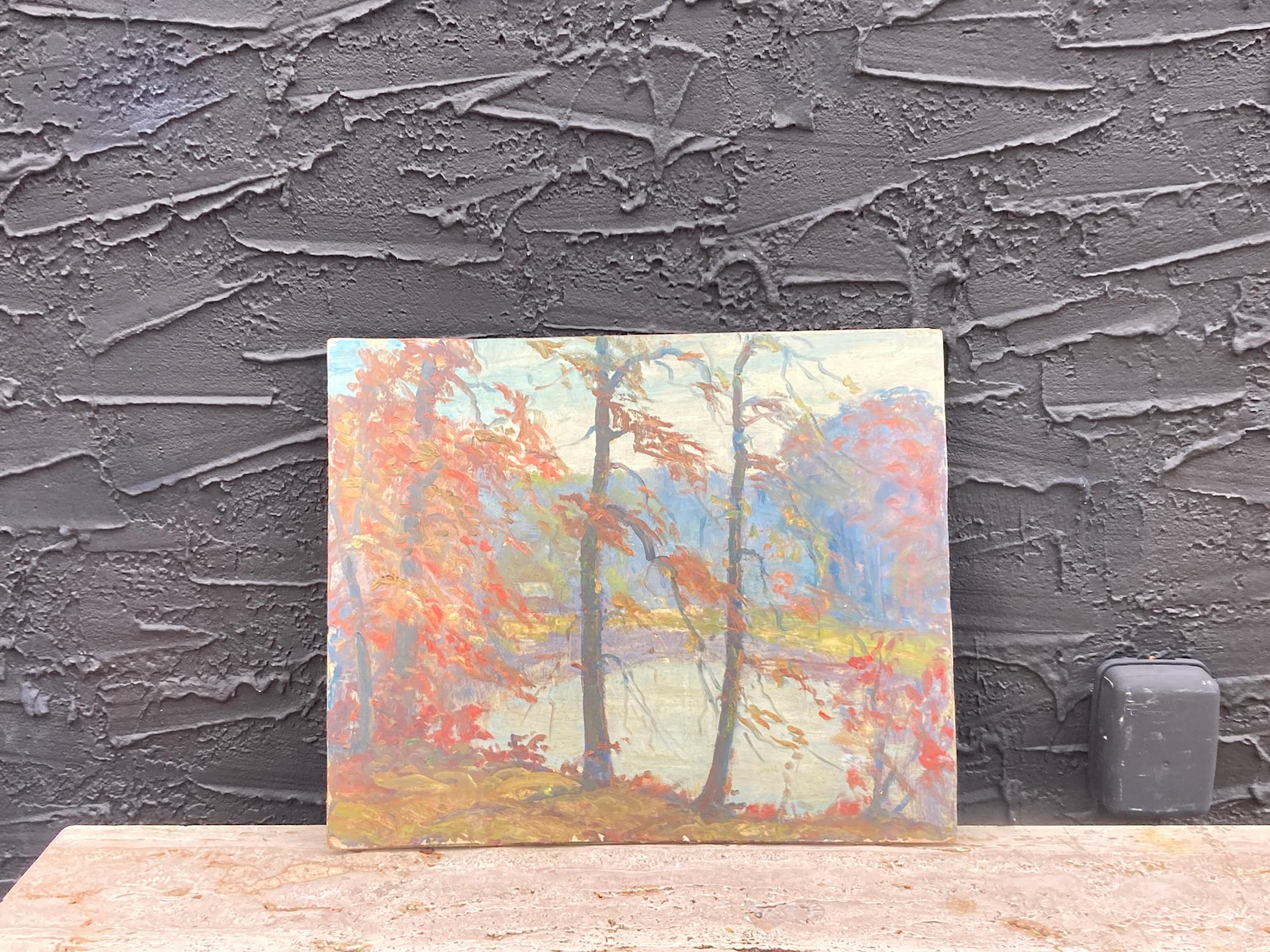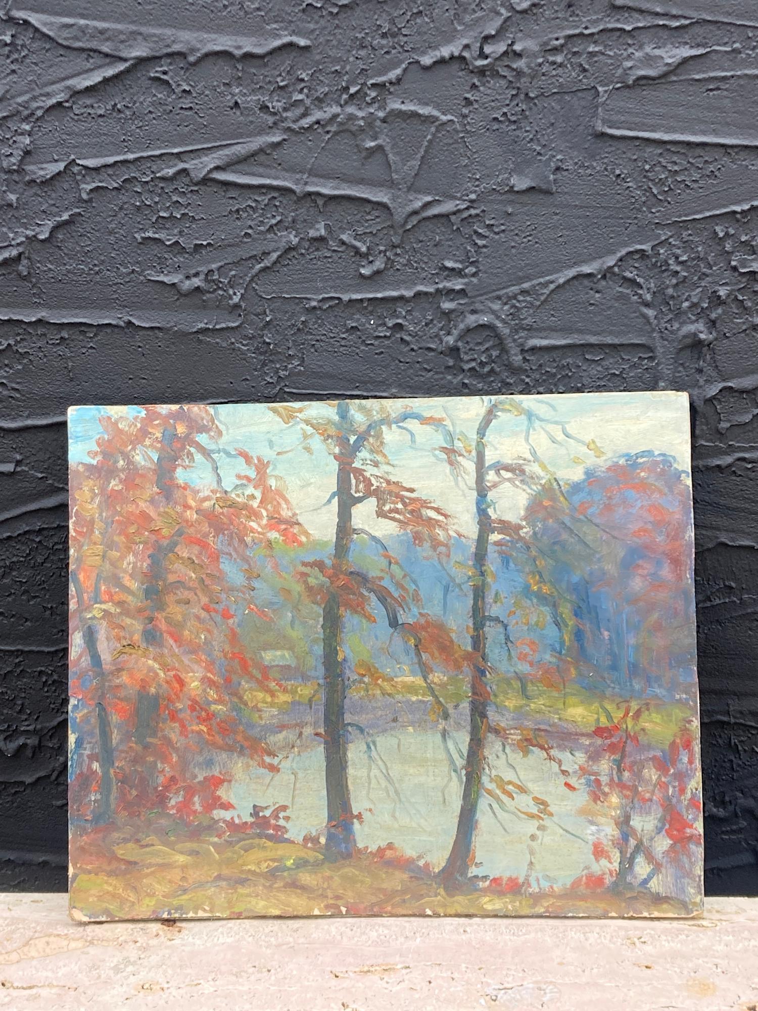 Carl G.T. Olson original painting on board fall scene on lake #20