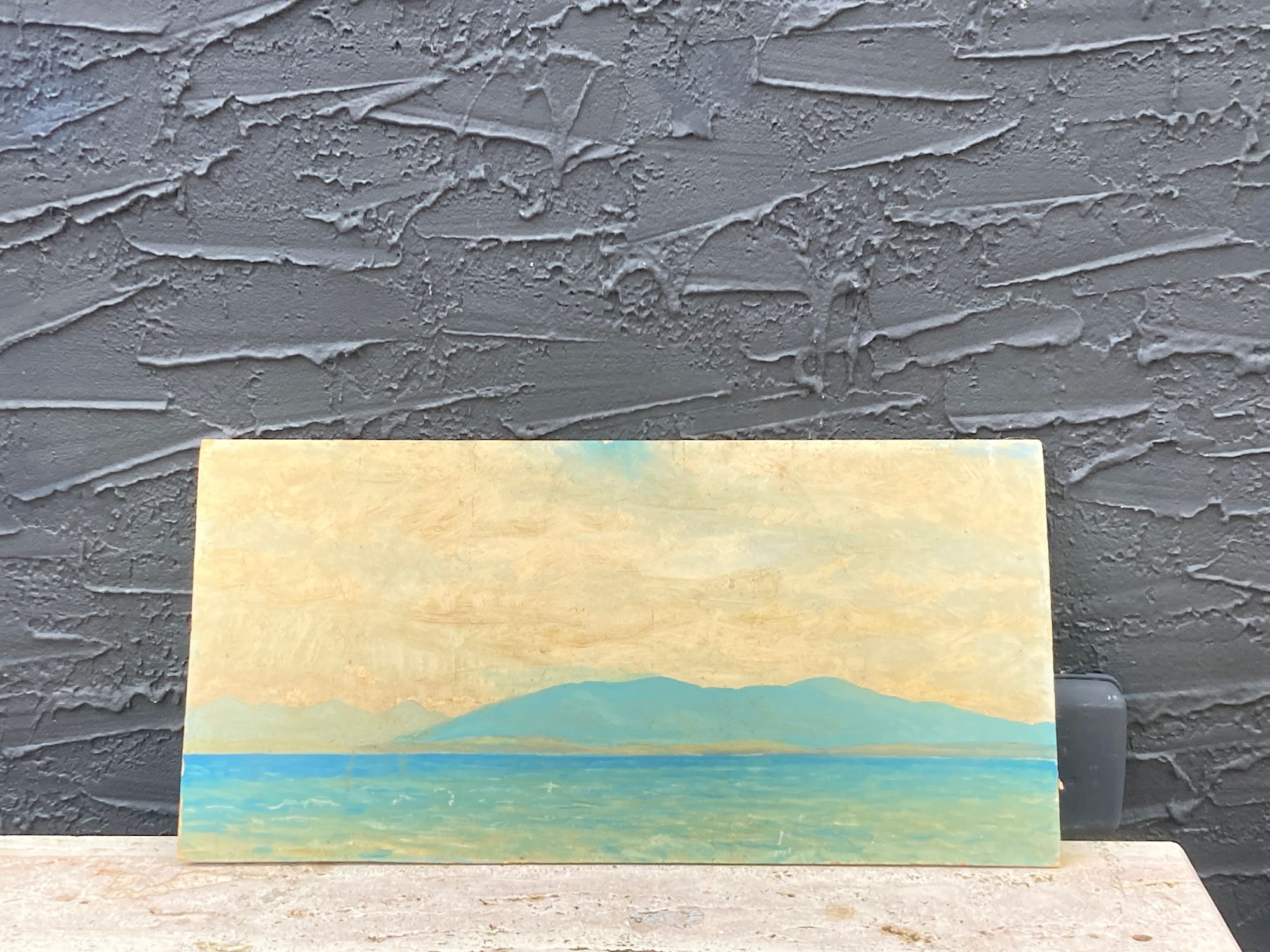 Carl G.T. Olson original painting on board unfinished coastal scene with mountains #34