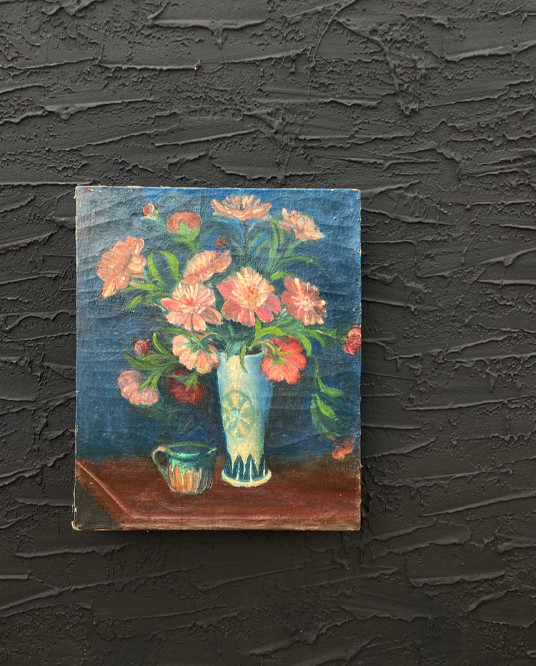 Carl G.T. Olson original painting on canvas bouquet of flowers with blue background #1