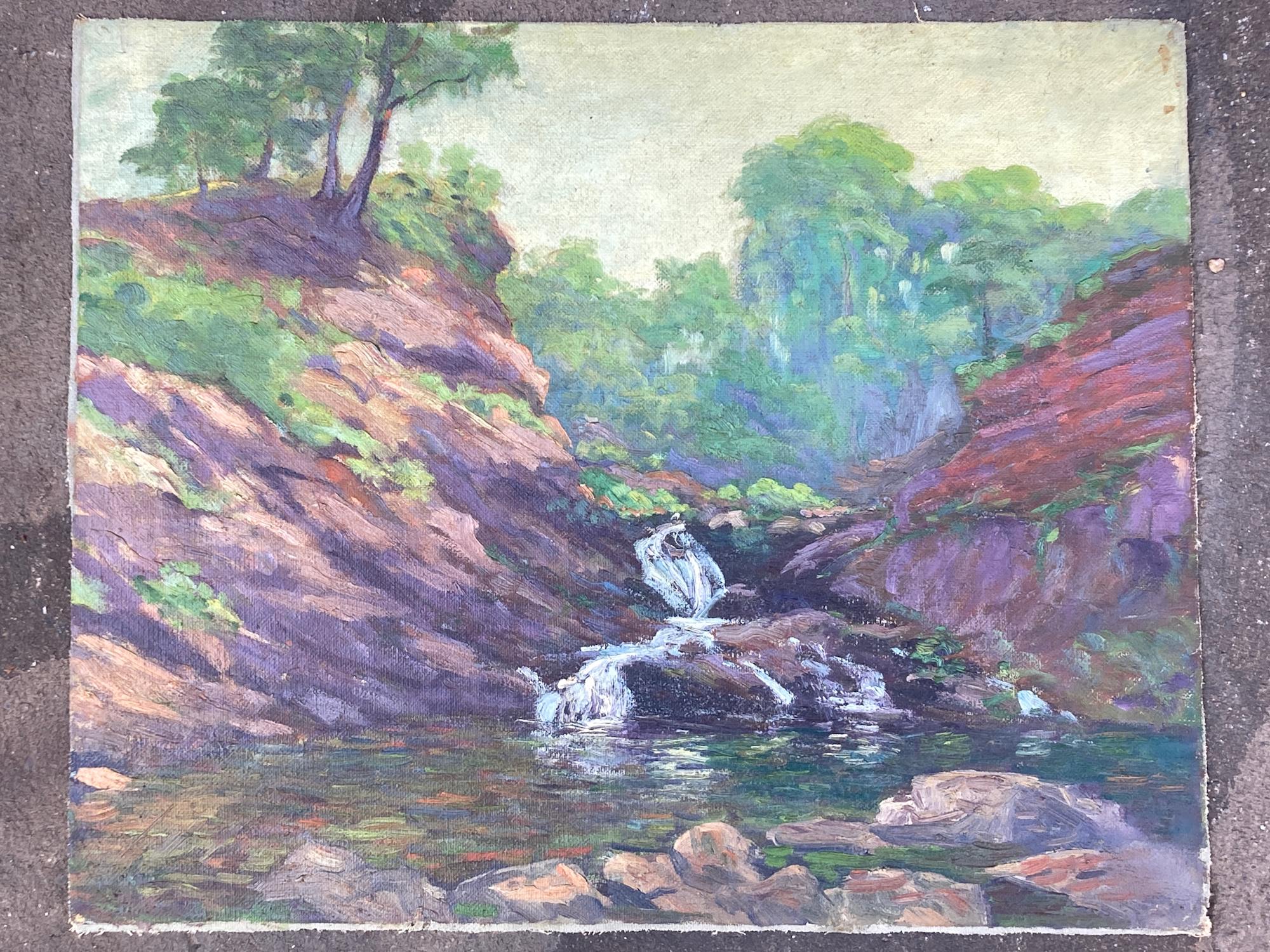 Carl G. T. Olson original painting on canvas landscape with waterfall #152