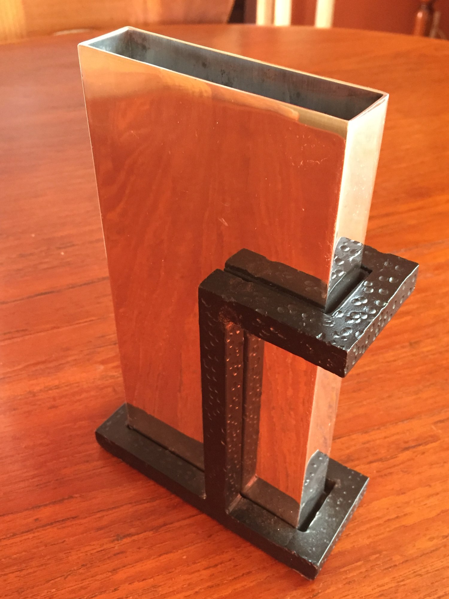 Chrome and black sculpture vase by Aram