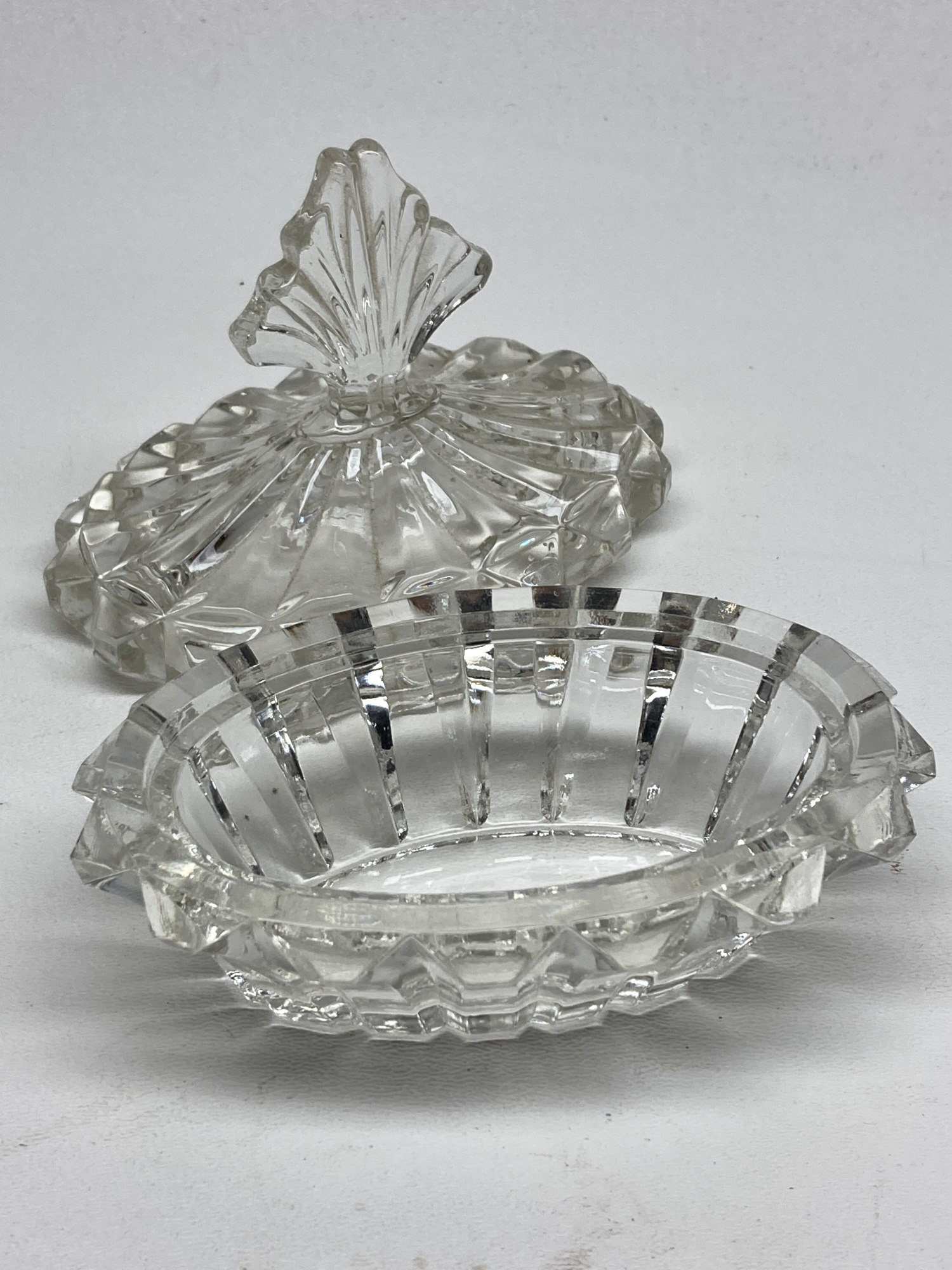 Clear glass Art Deco Perfume covered powder dish