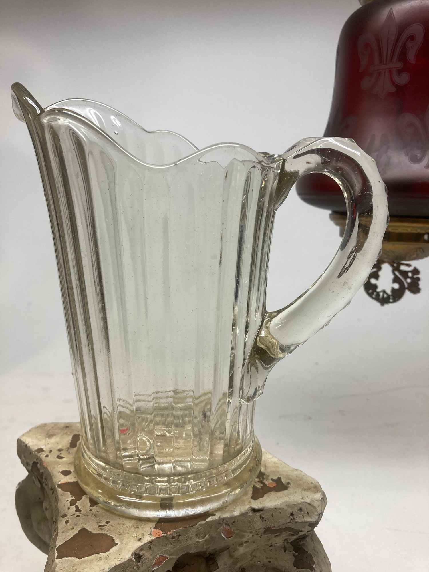 clear glass water pitcher