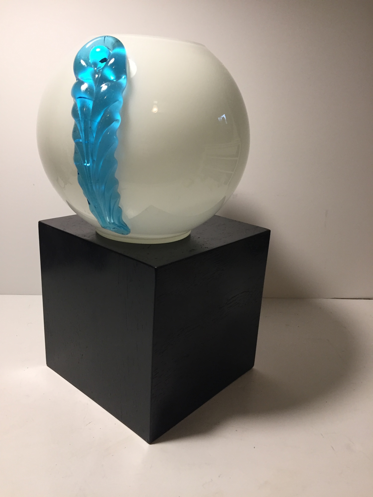 Czech art glass white and blue ball vase