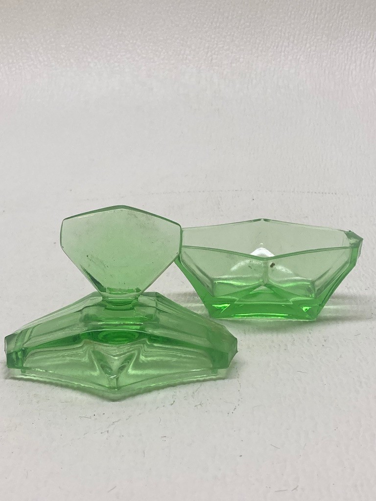 Emerald green perfume covered powder dish