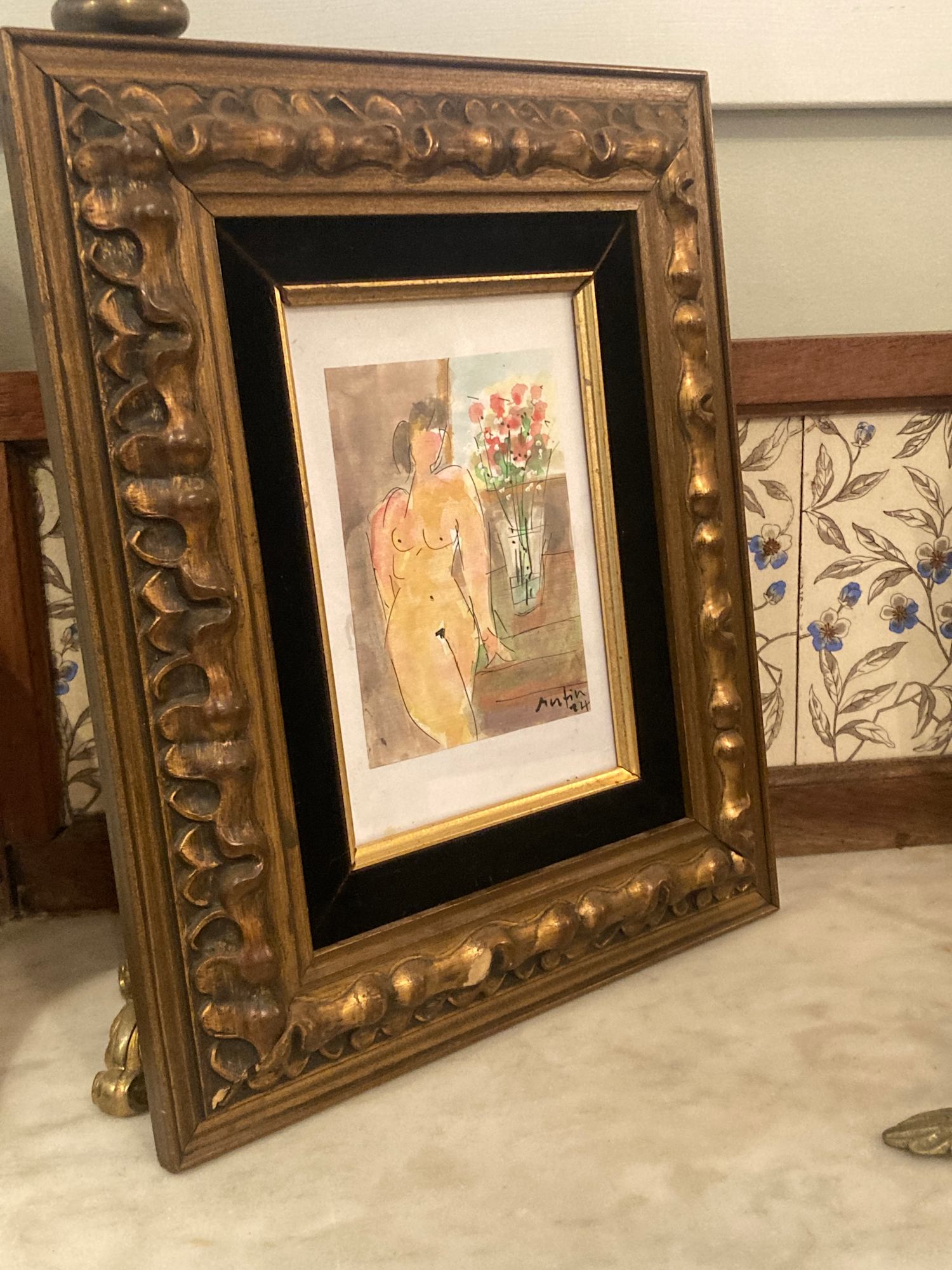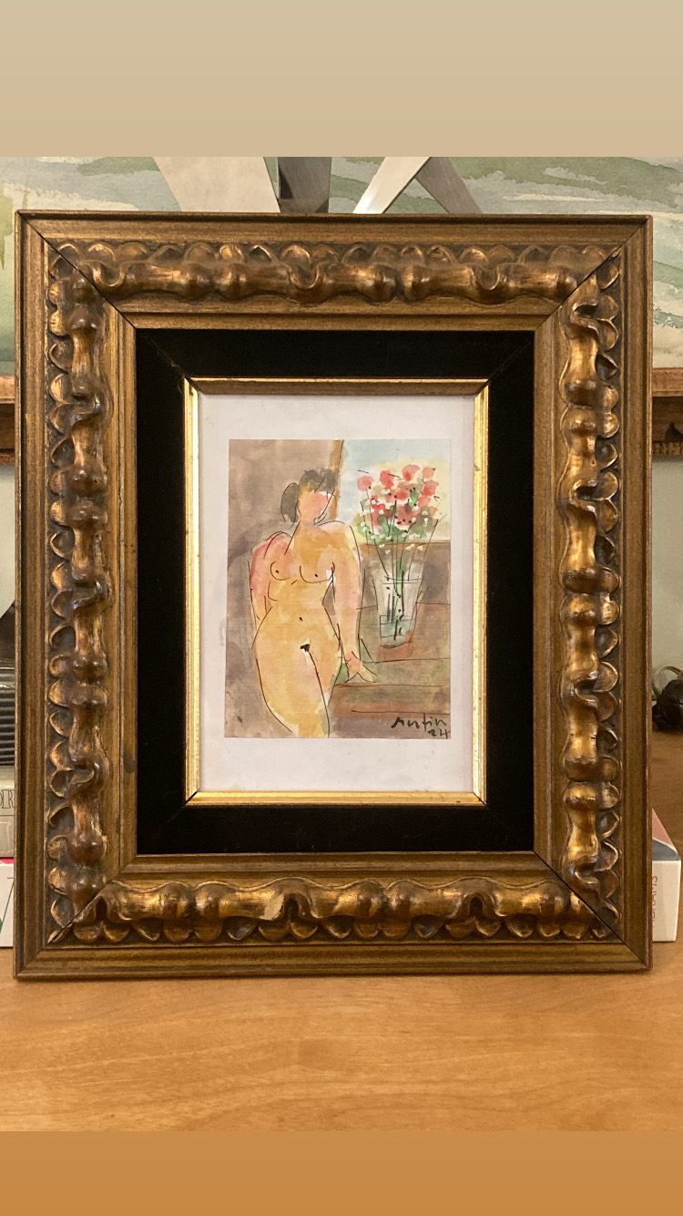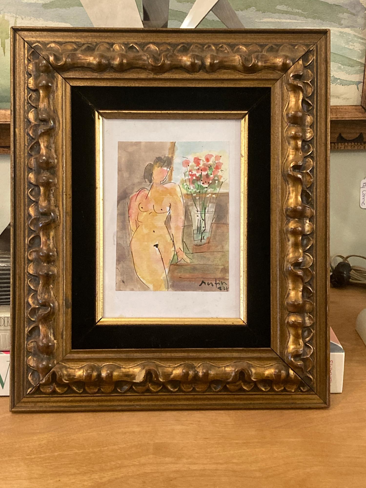 framed hand painted watercolor of nude