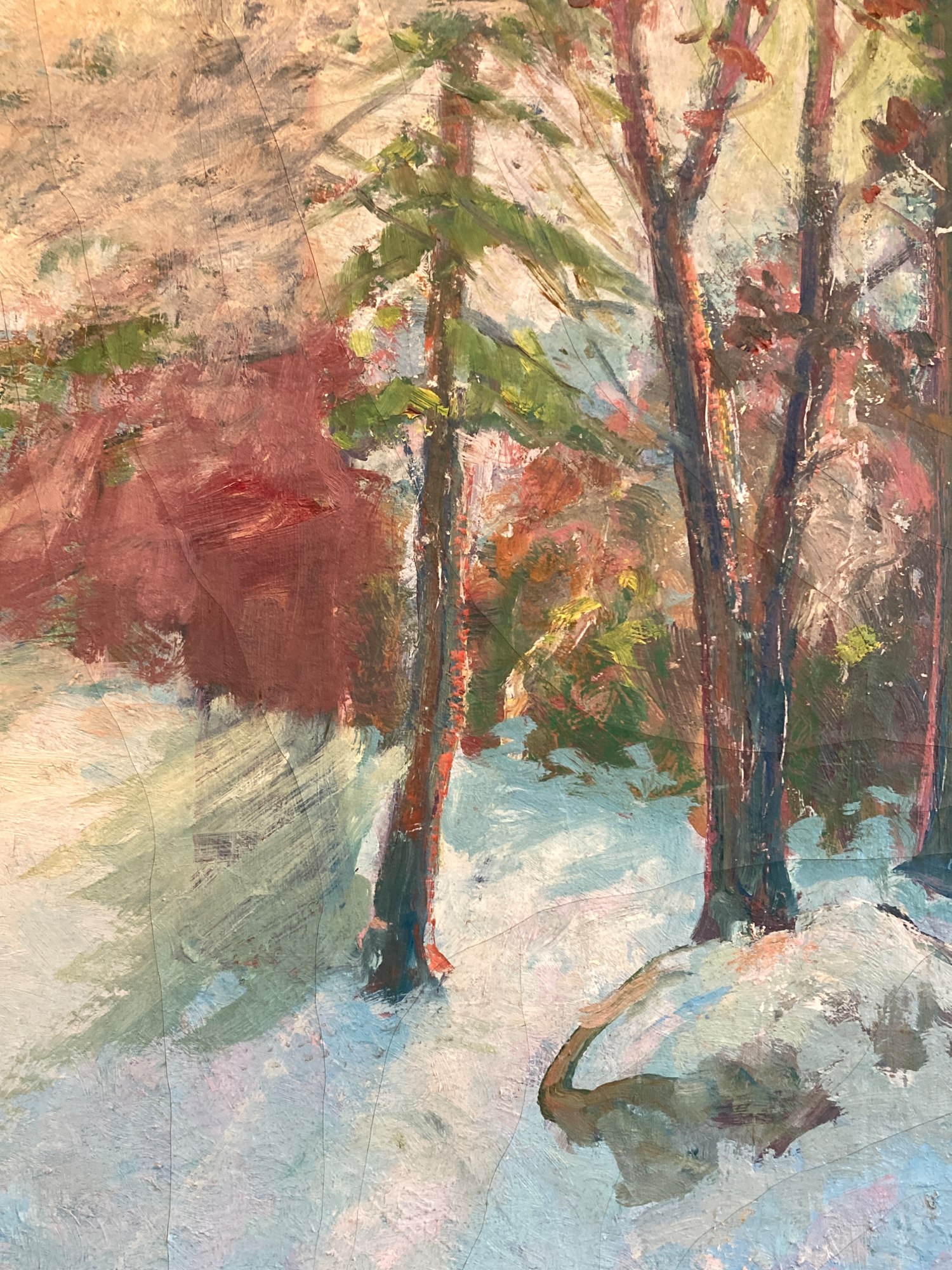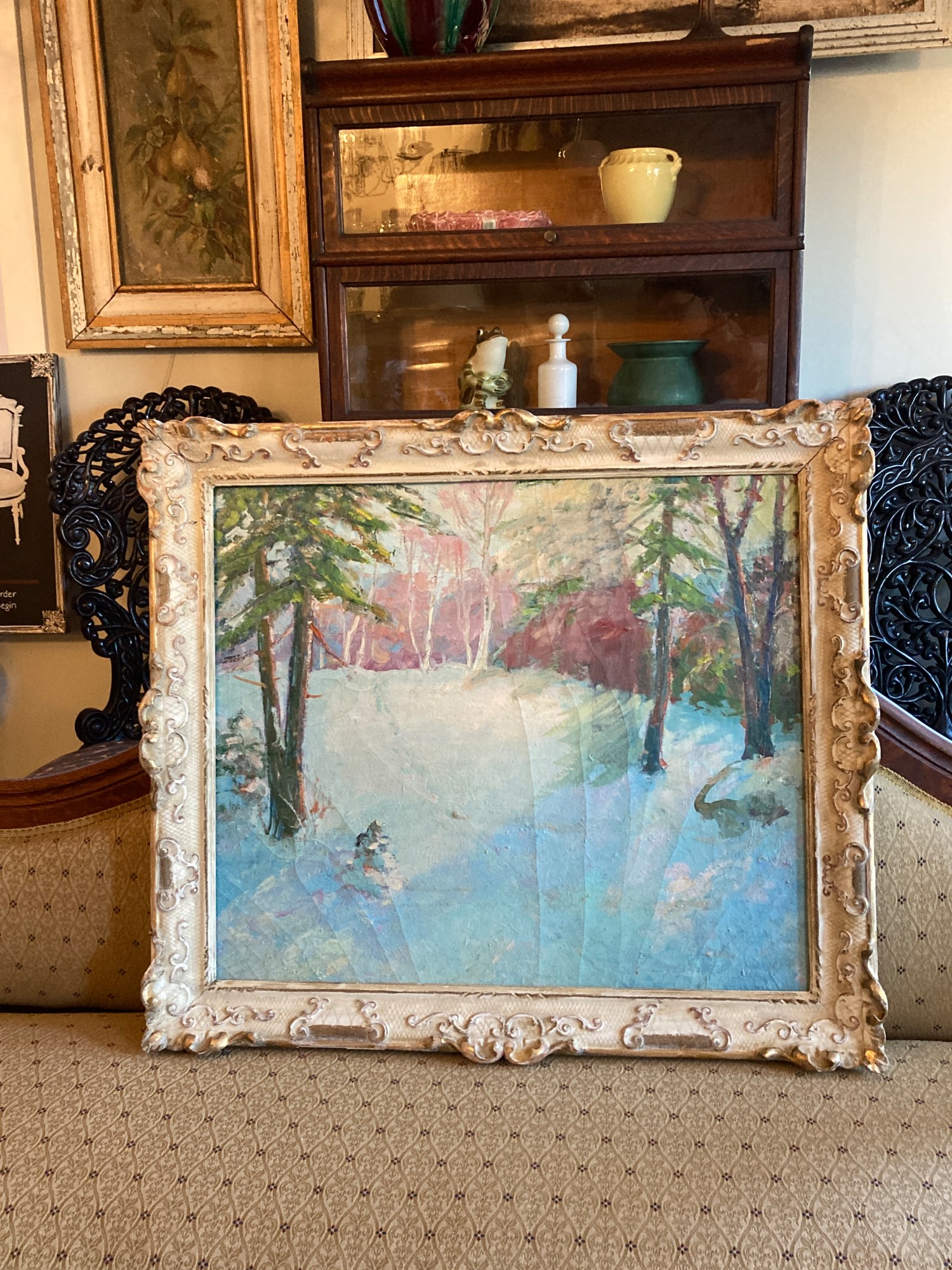 Framed oil on canvas winter time path by Carl G. T. Olson