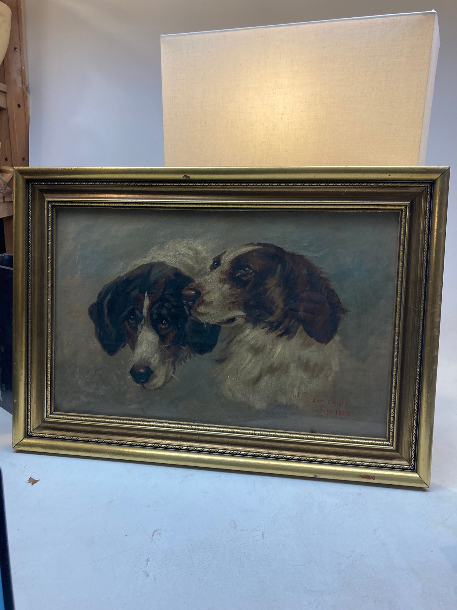 Framed original painting of dogs on board ~ Edward Barnard Lintott