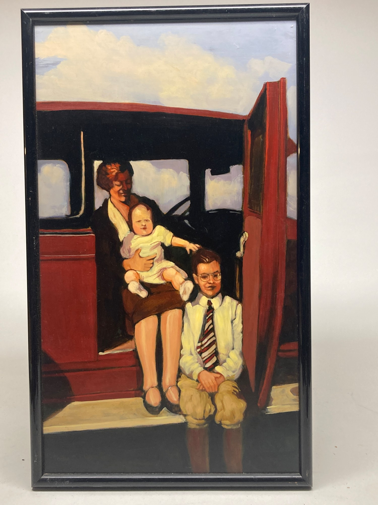 Framed original painting on board of family of three by Polly Podolosky