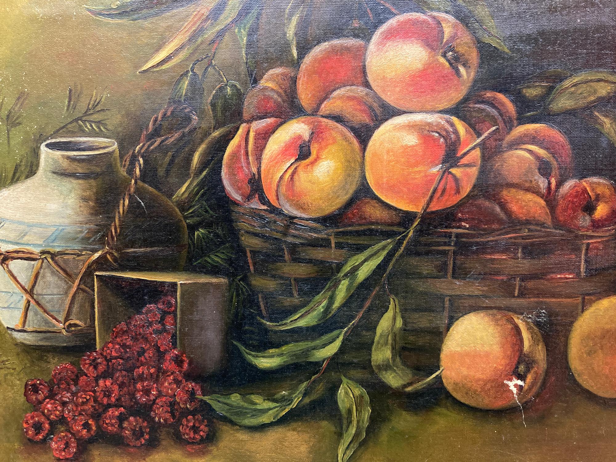 Framed primitive painting of fruit