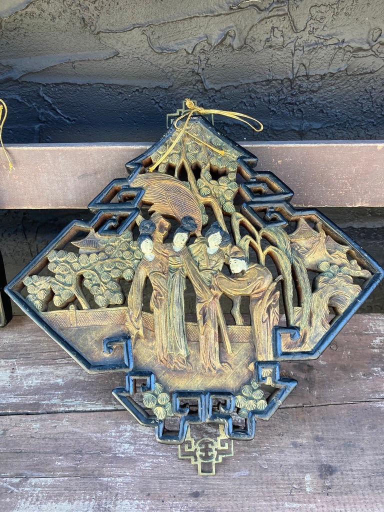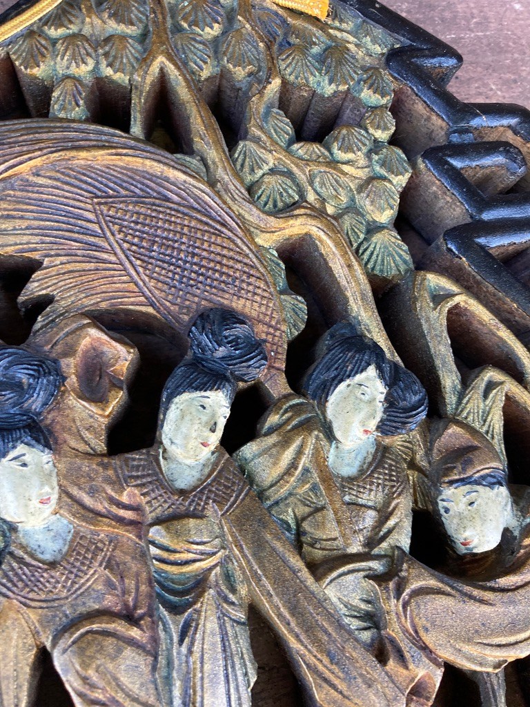 • Hand carved Japanese wood figural panel