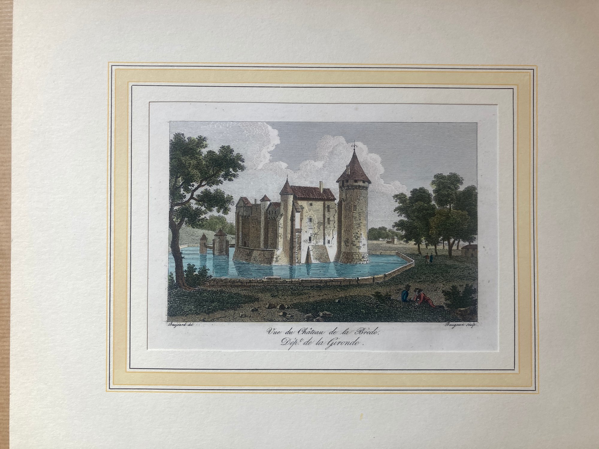 Hand colored engraving circa 1860's ~ Vue du Chateau de la Brede