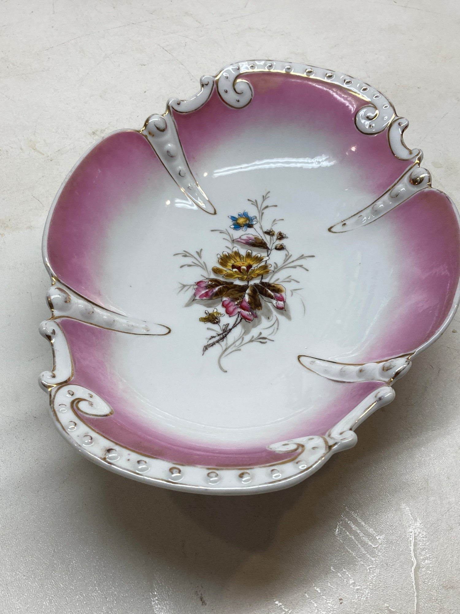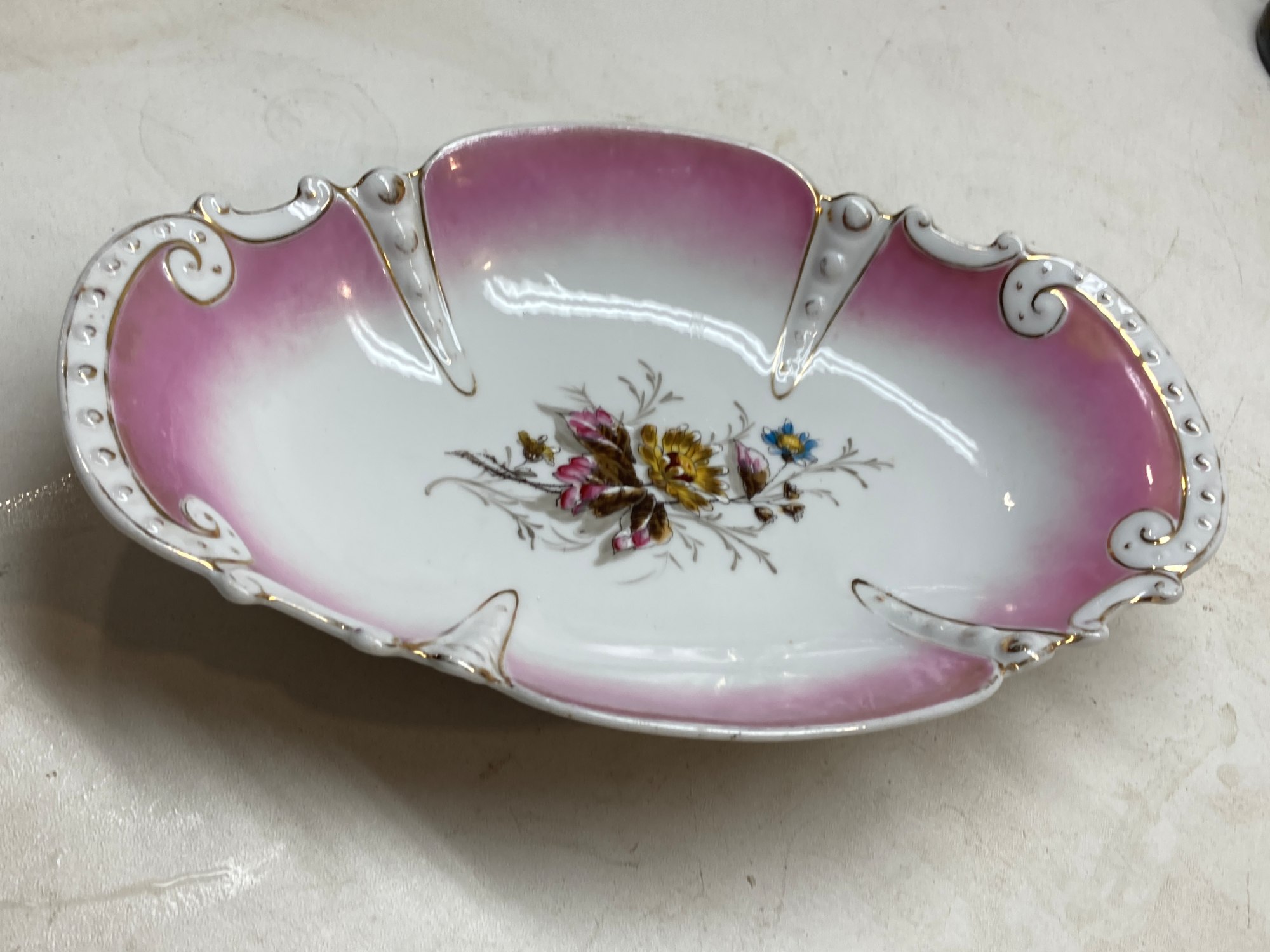 Hand decorated Victorian pink serving dish