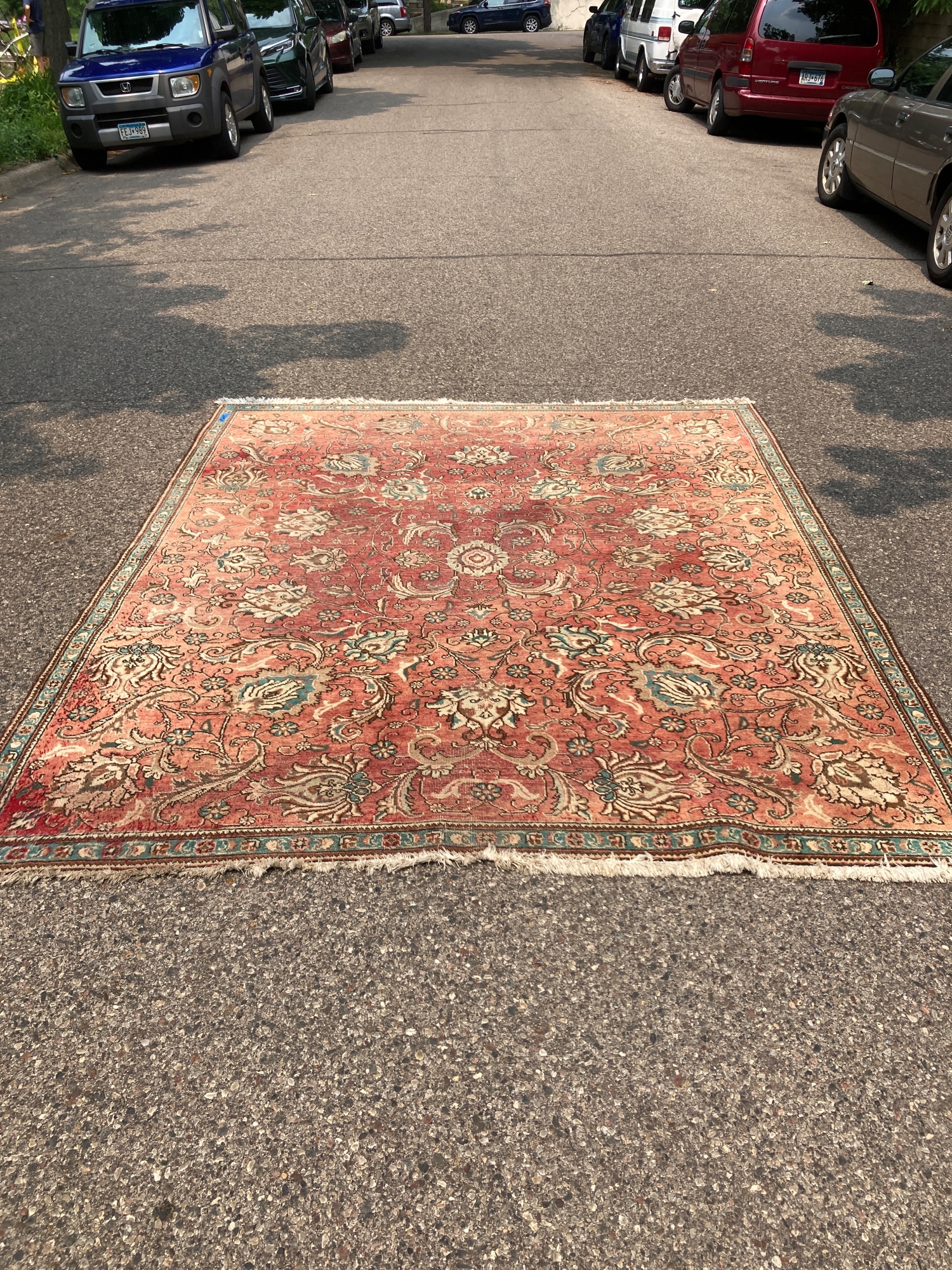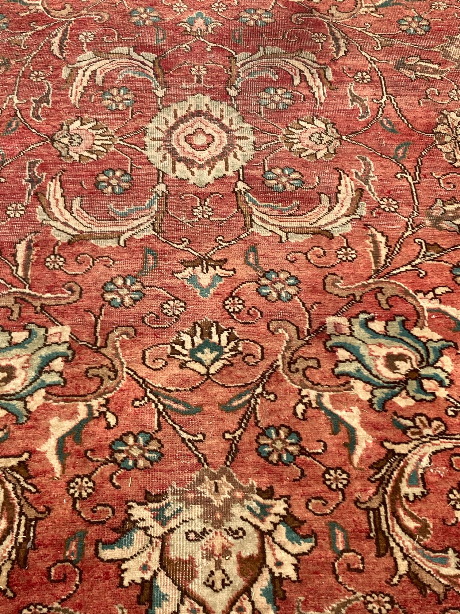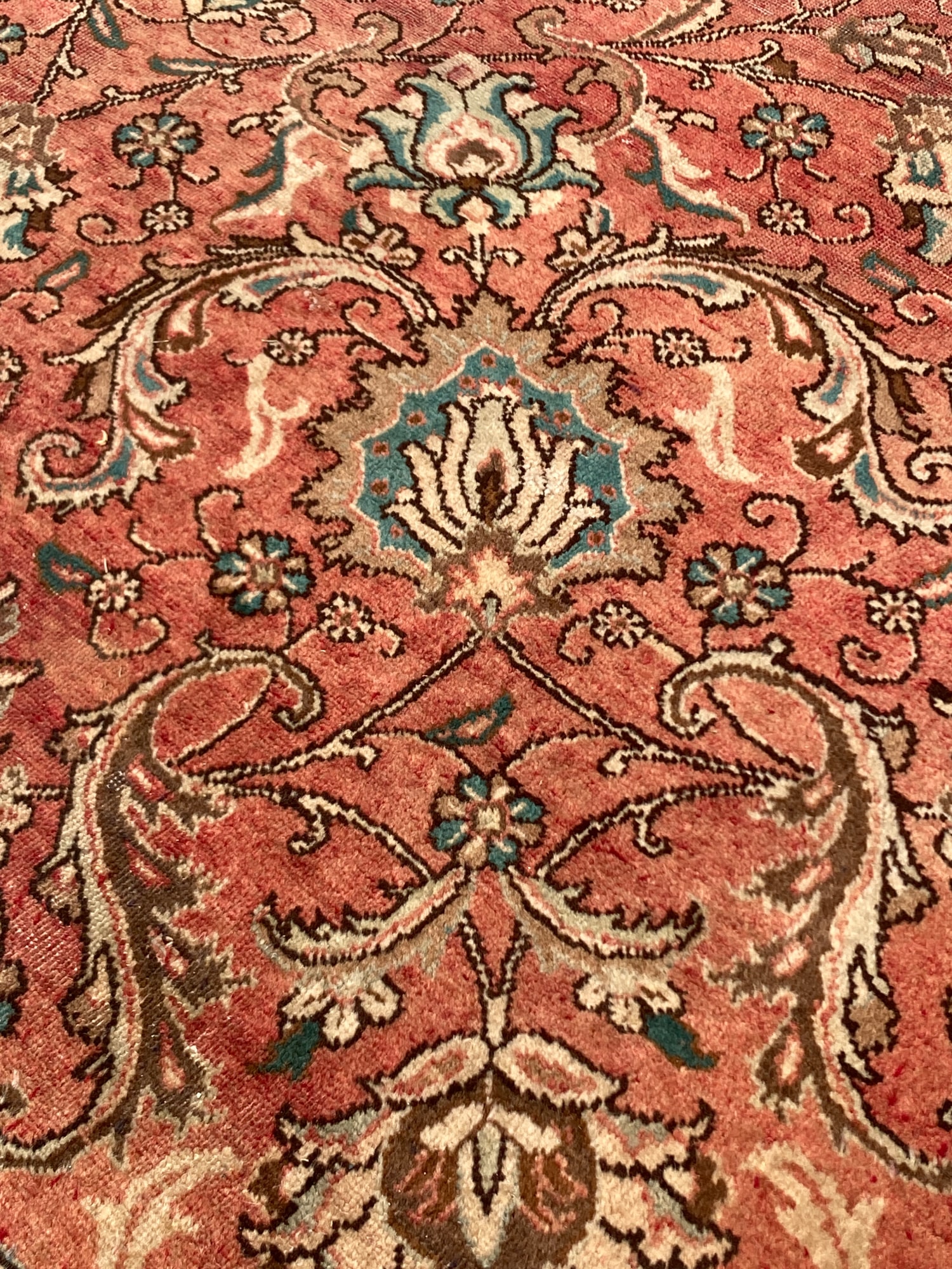 Hand made wool rug with teal