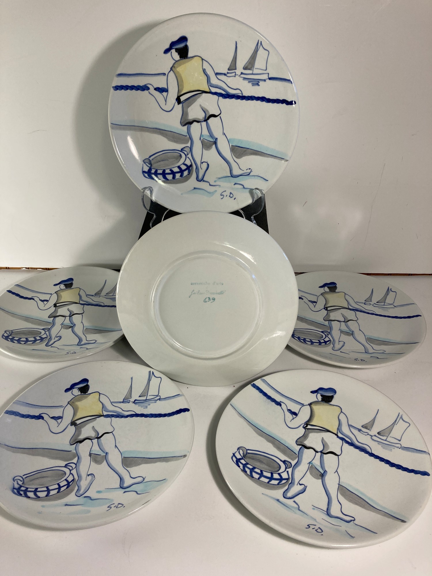 Hand painted Italian fishing motif 9 1/2" plate(s)