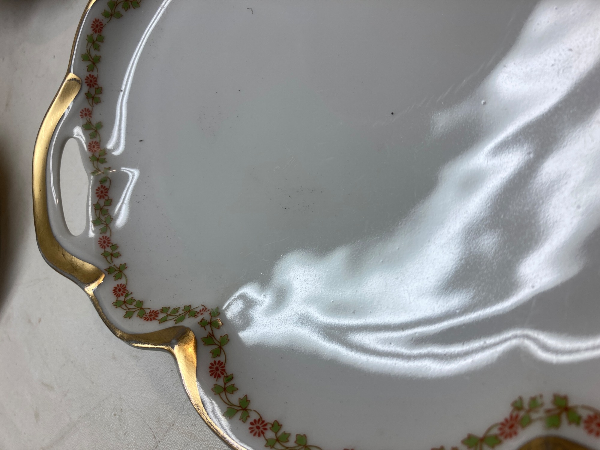 Haviland Limoges French porcelain handled serving dish with red flowers and green leaves