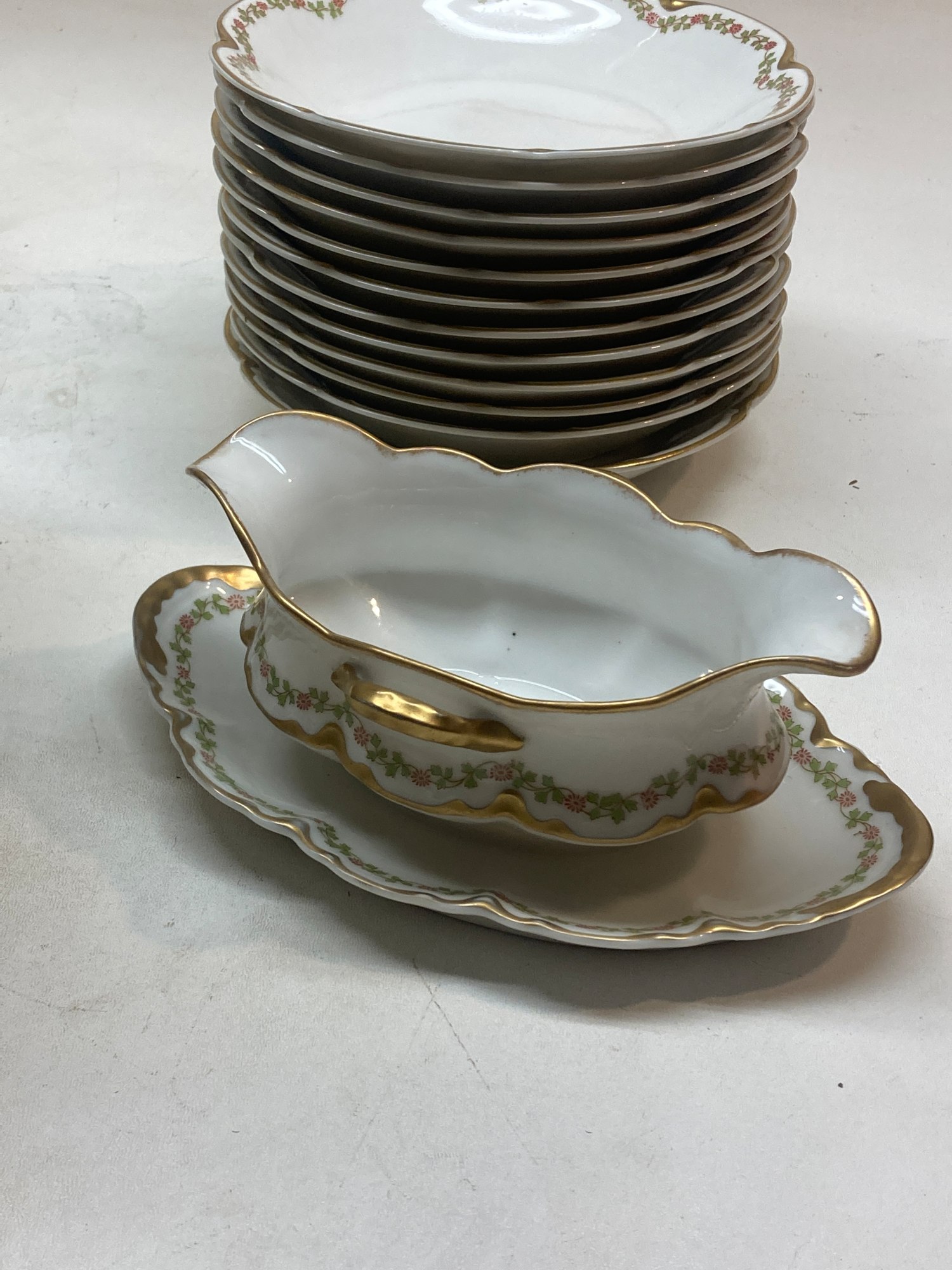 Haviland Limoges French porcelain sauce dish with red flowers and green leaves