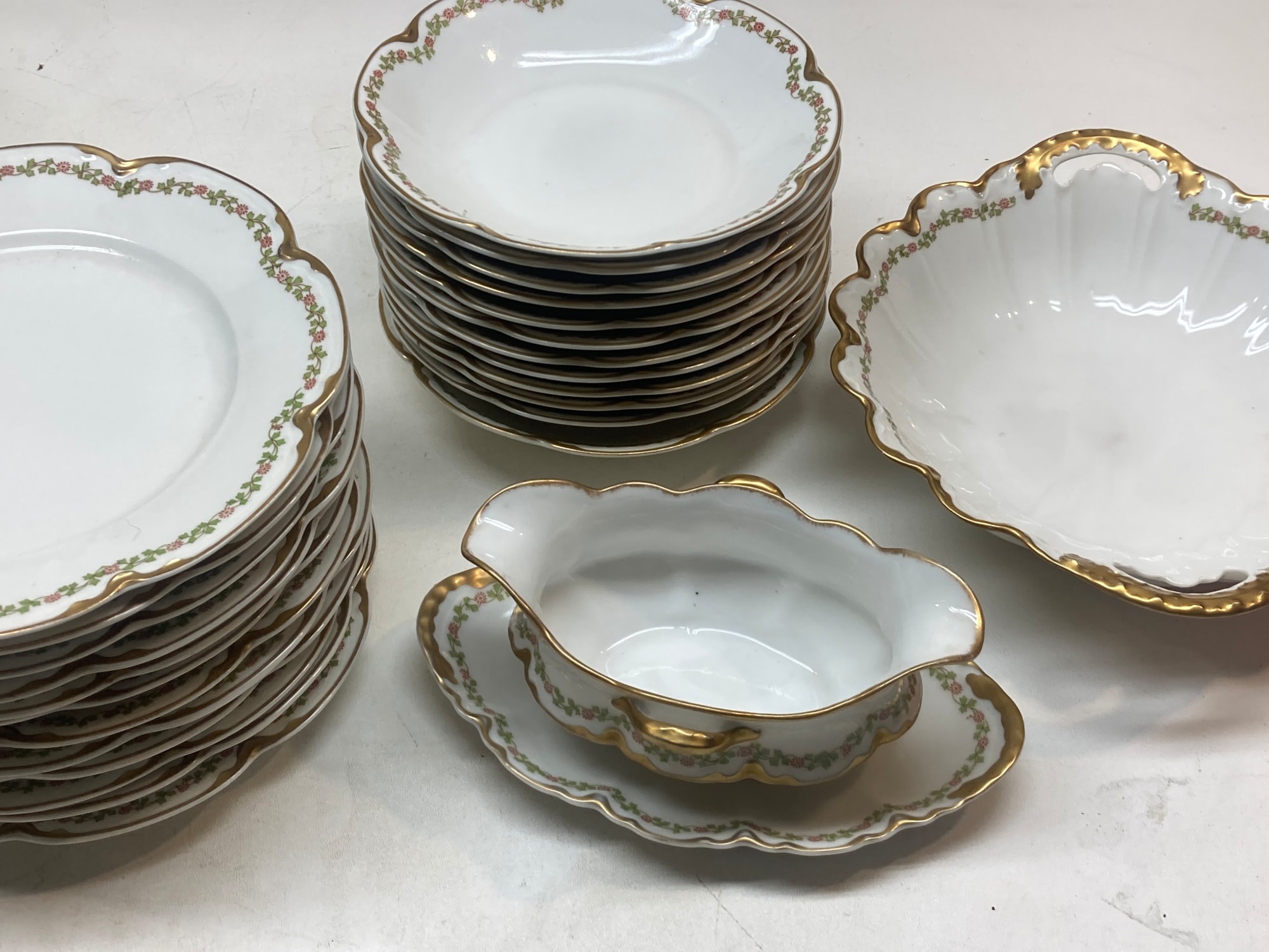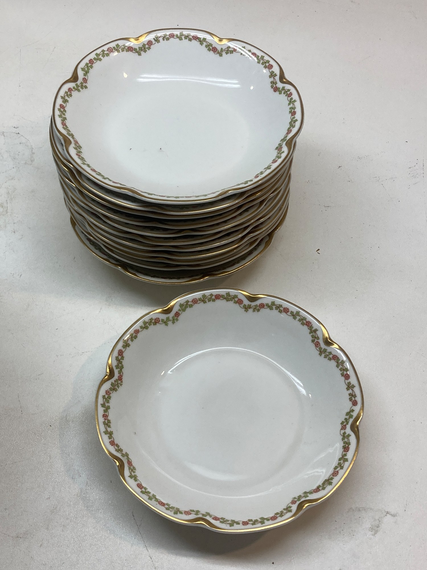Haviland Limoges French porcelain soup bowls with red flowers and green leaves (12)