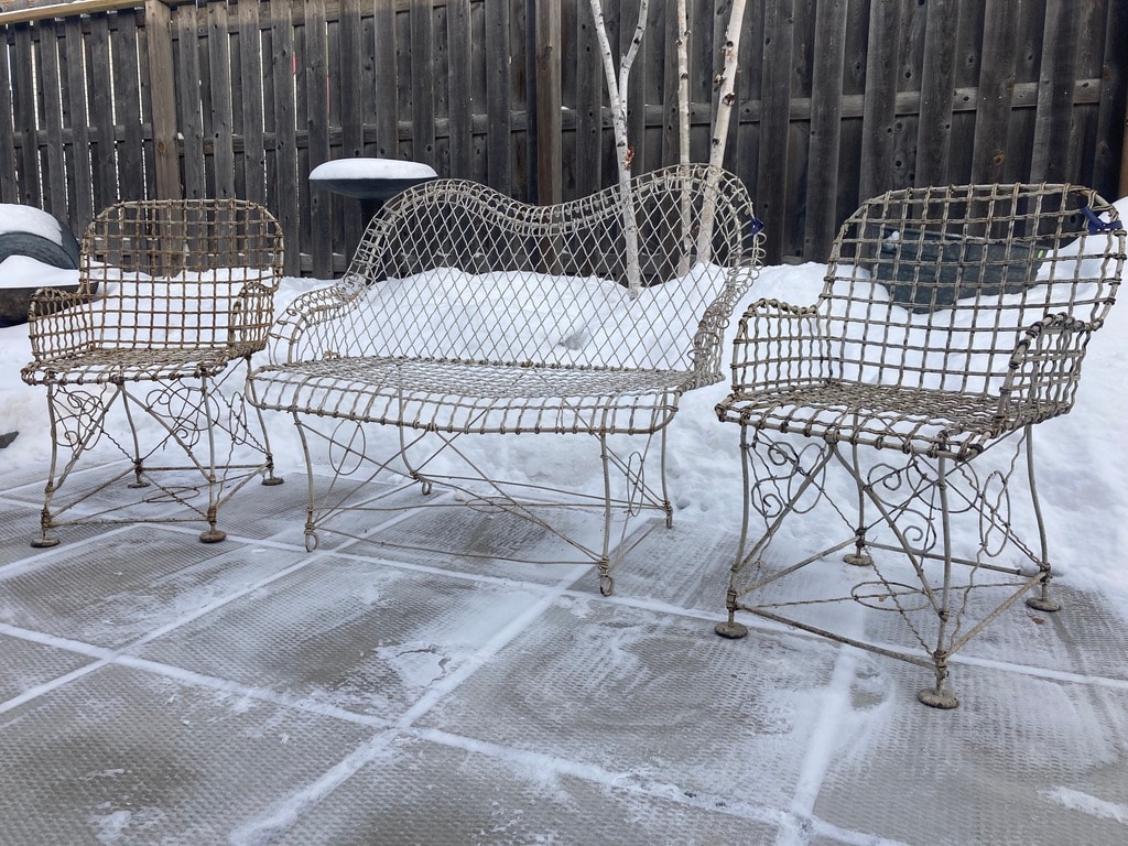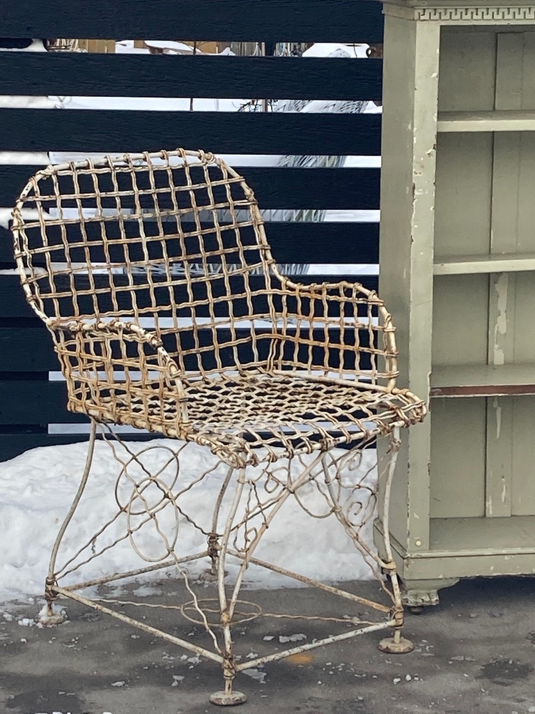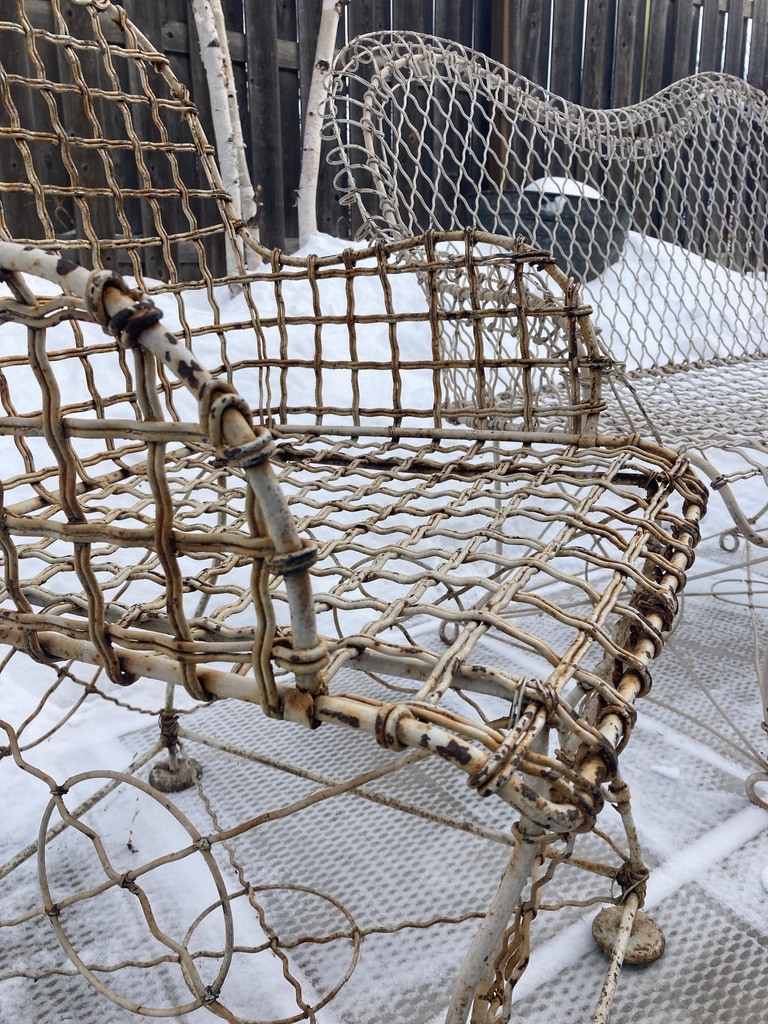 Howard and Morse wire mesh cloth pair of chairs