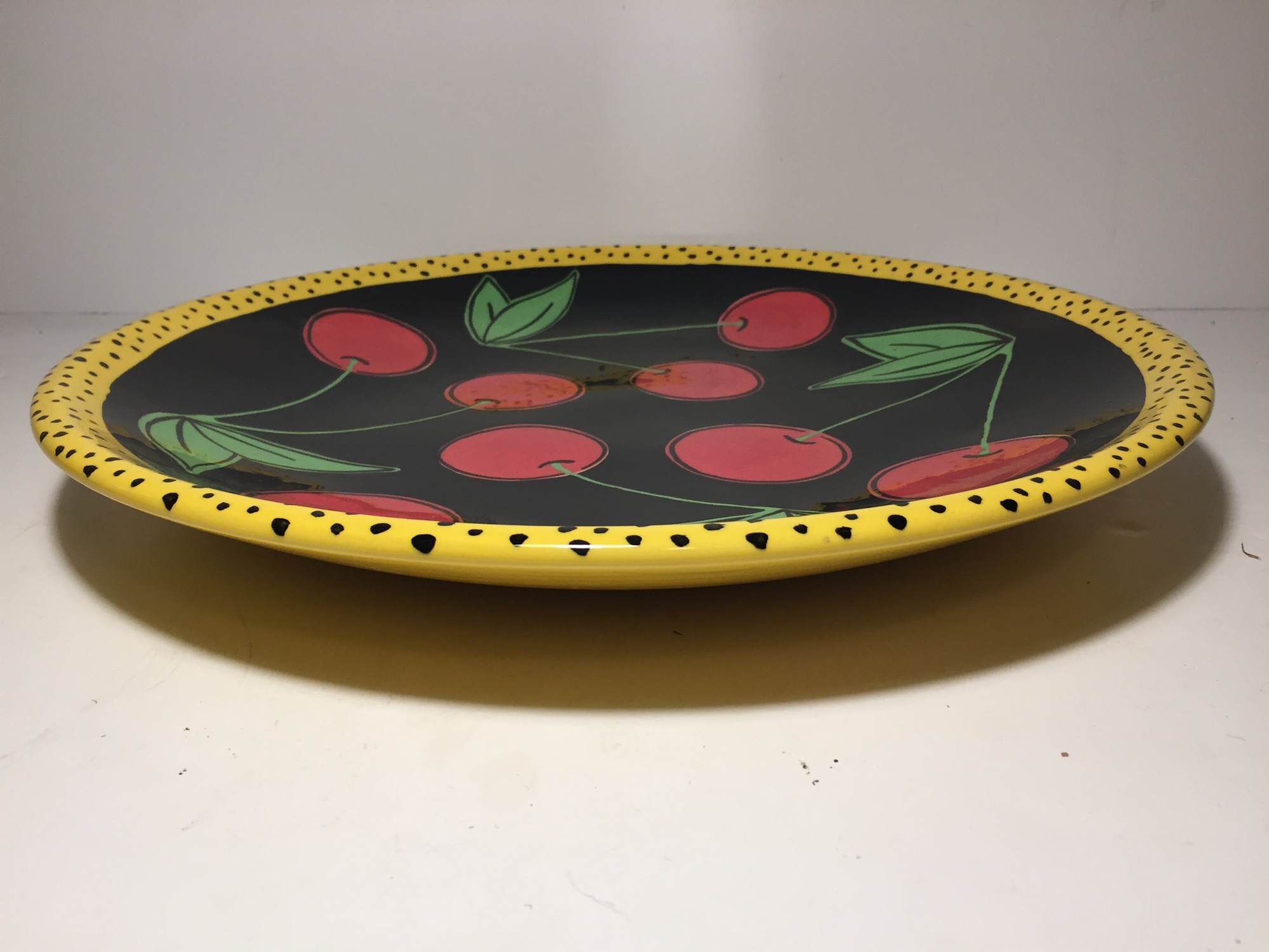 Large hand painted platter with cherries circa 1995