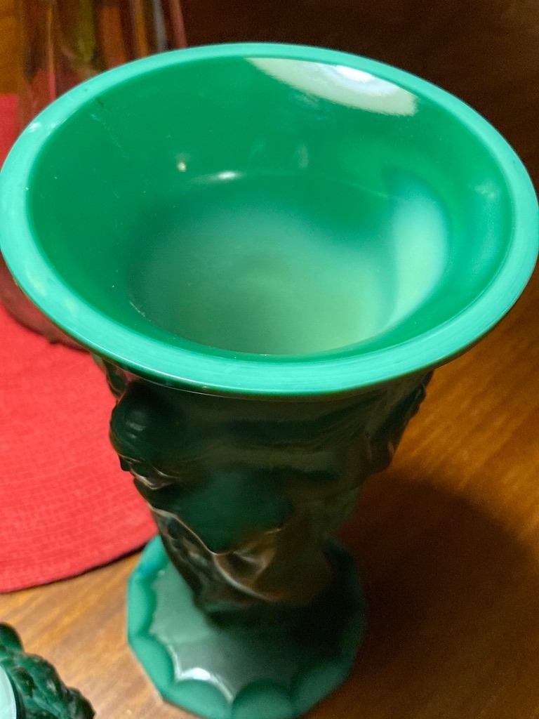 Large vintage malachite nymph vase