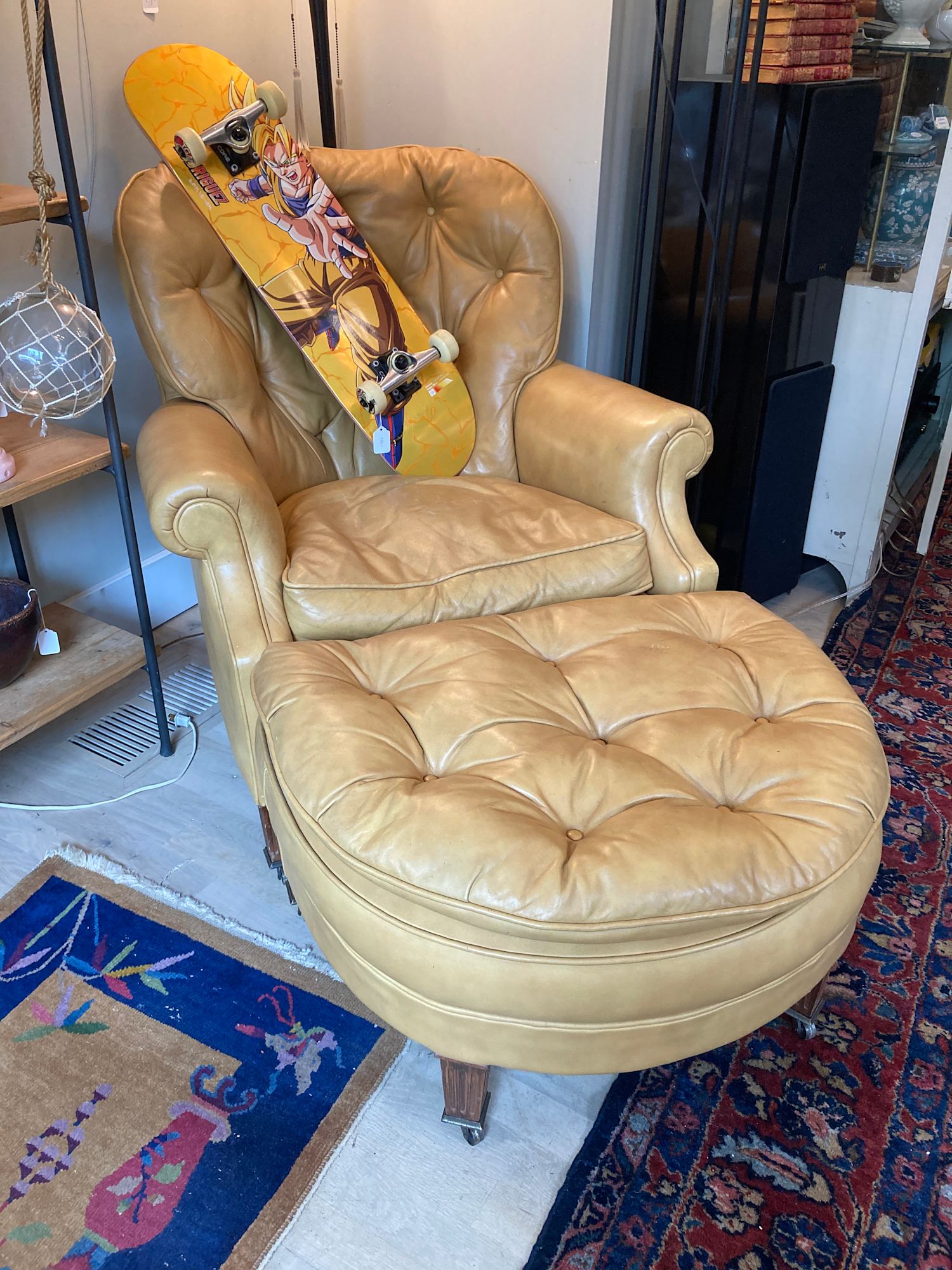 Mustard leather chair and ottoman