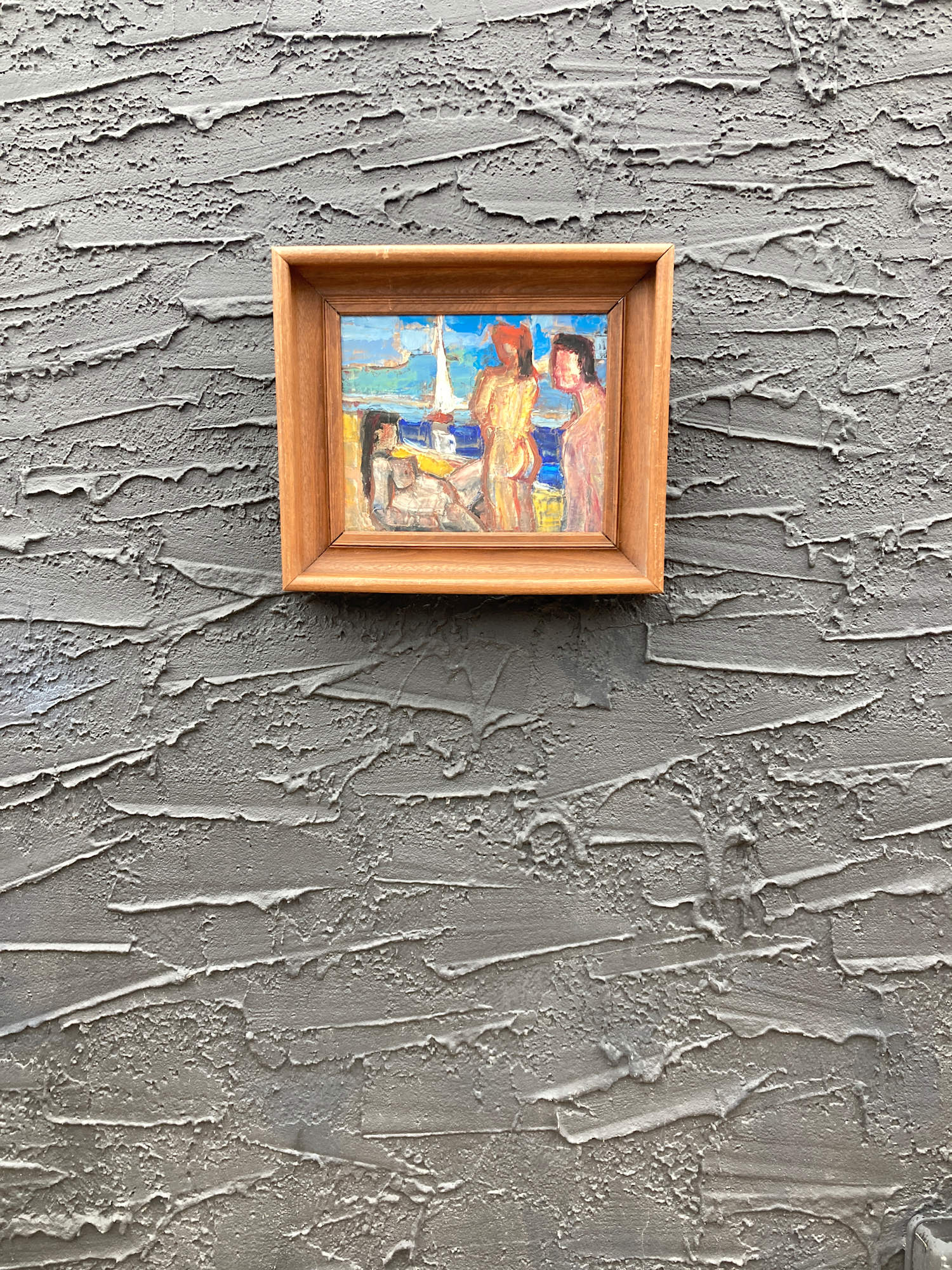 Original painting of bathing beauties on board