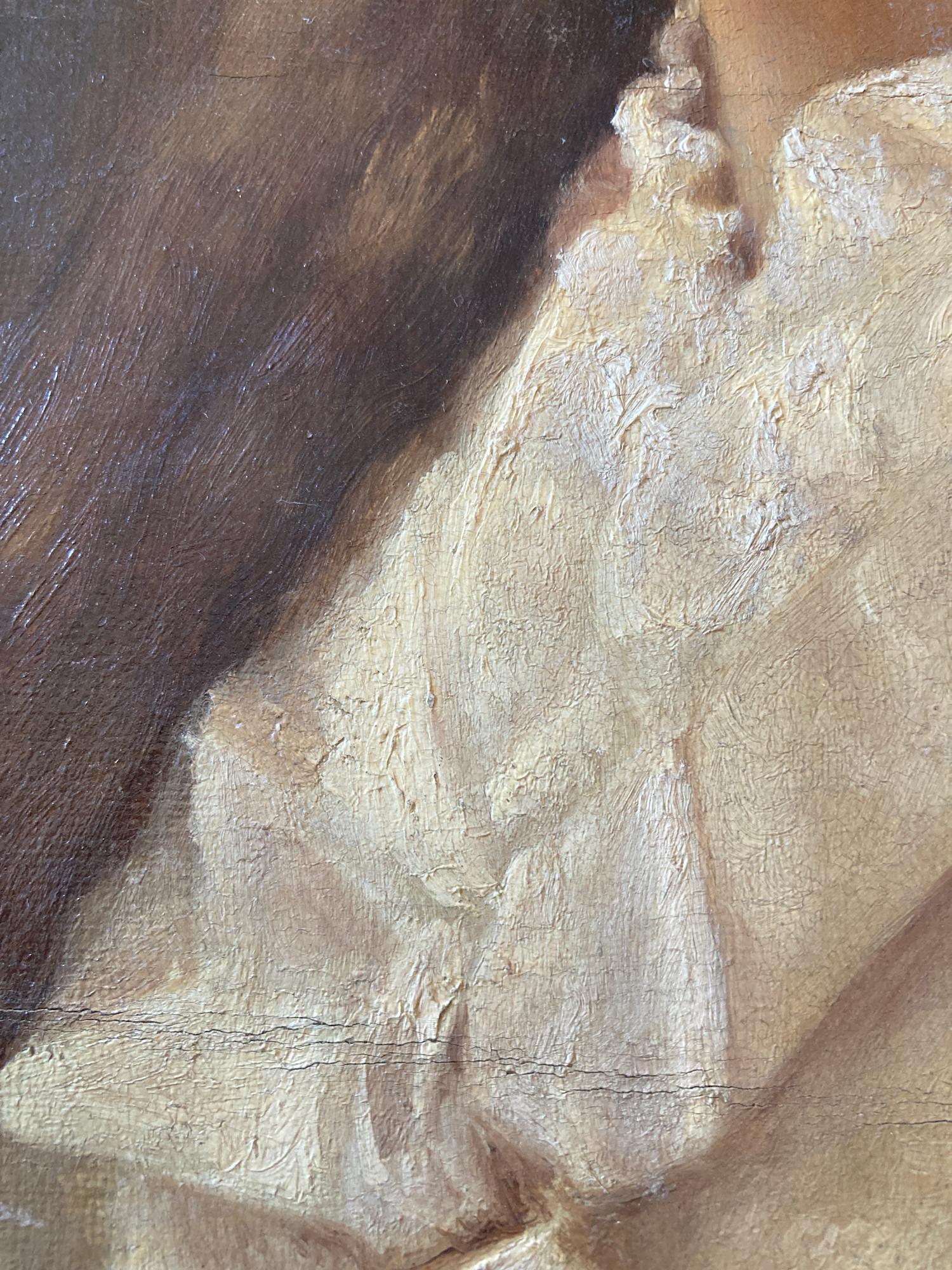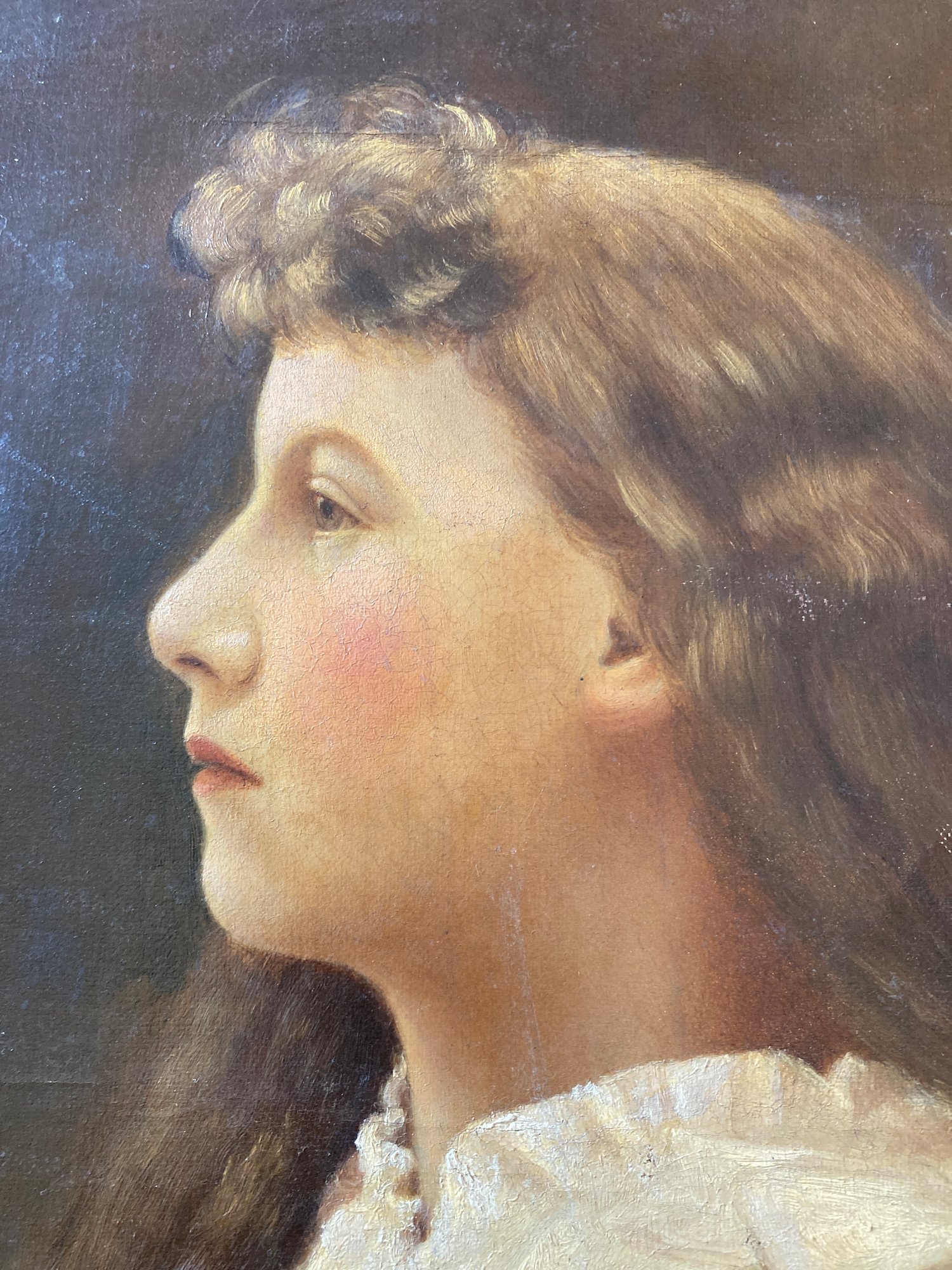 original unsigned painting on canvas of girl in white blouse #122