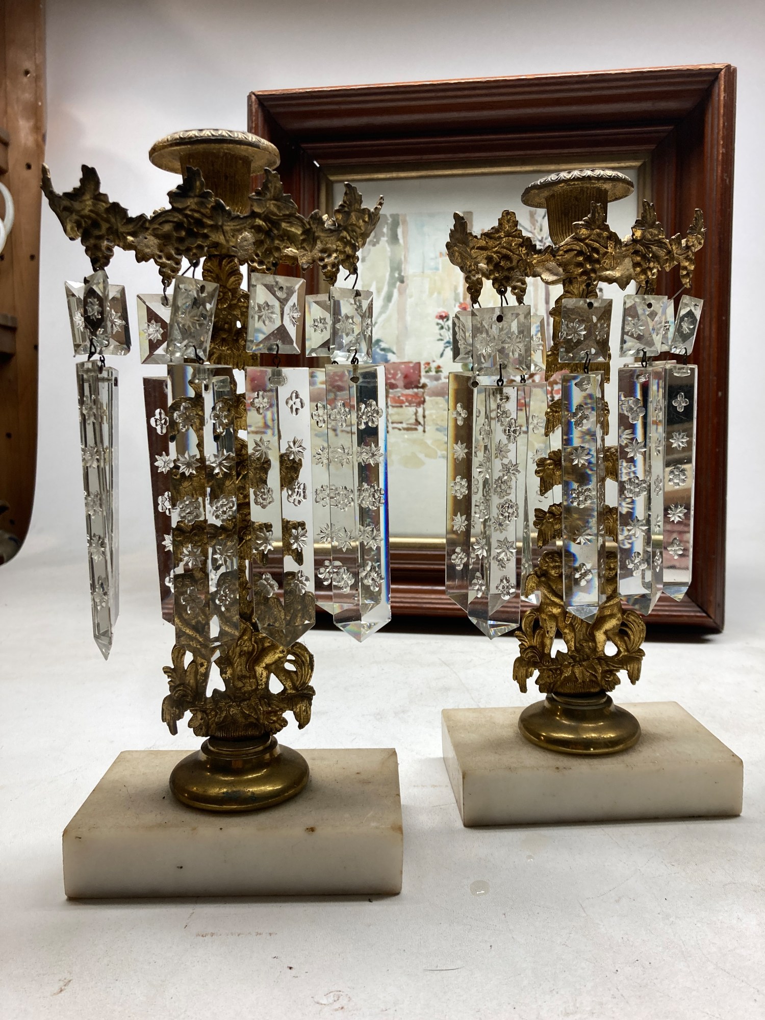 Pair of 1850's cherub motif candelabra lusters