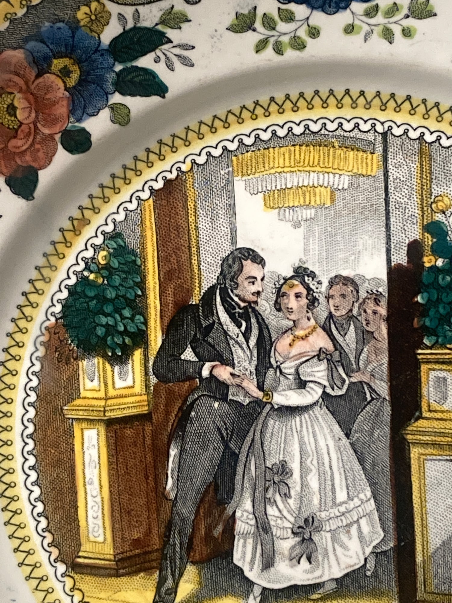 Pair of 7" romantic handprinted French plates