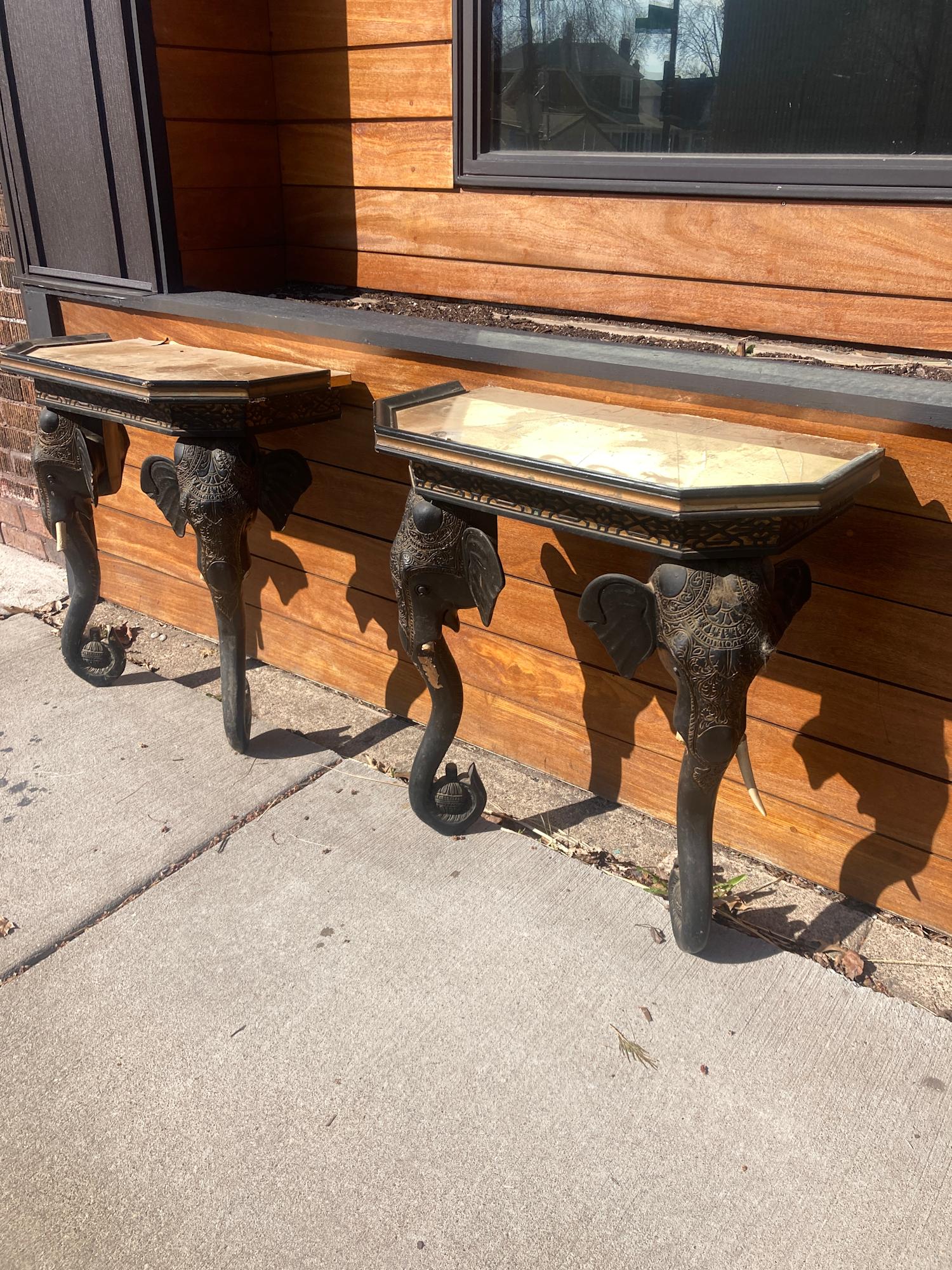 Pair of Elephant demilune tables