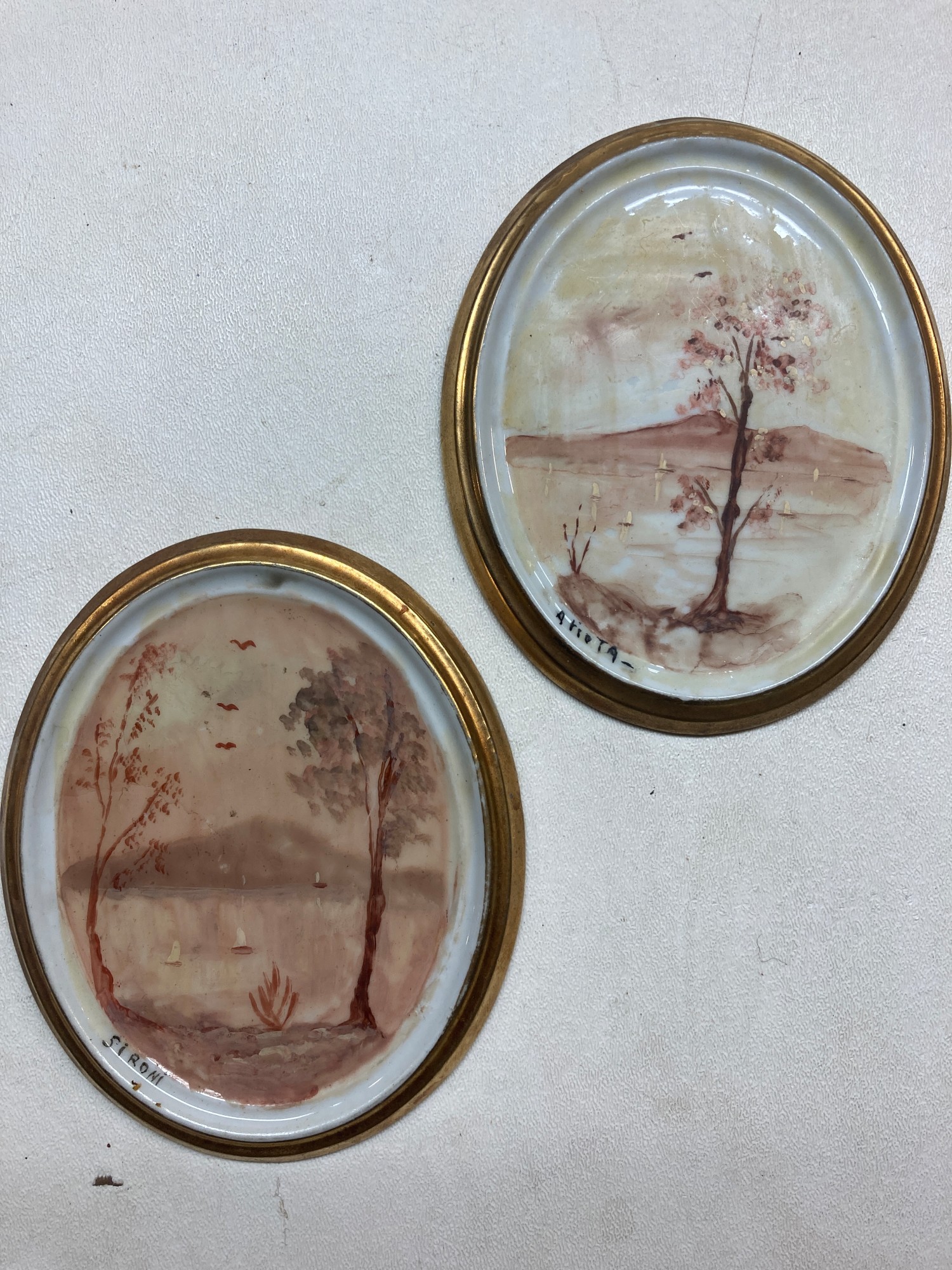 pair of hand painted victorian oval plaques
