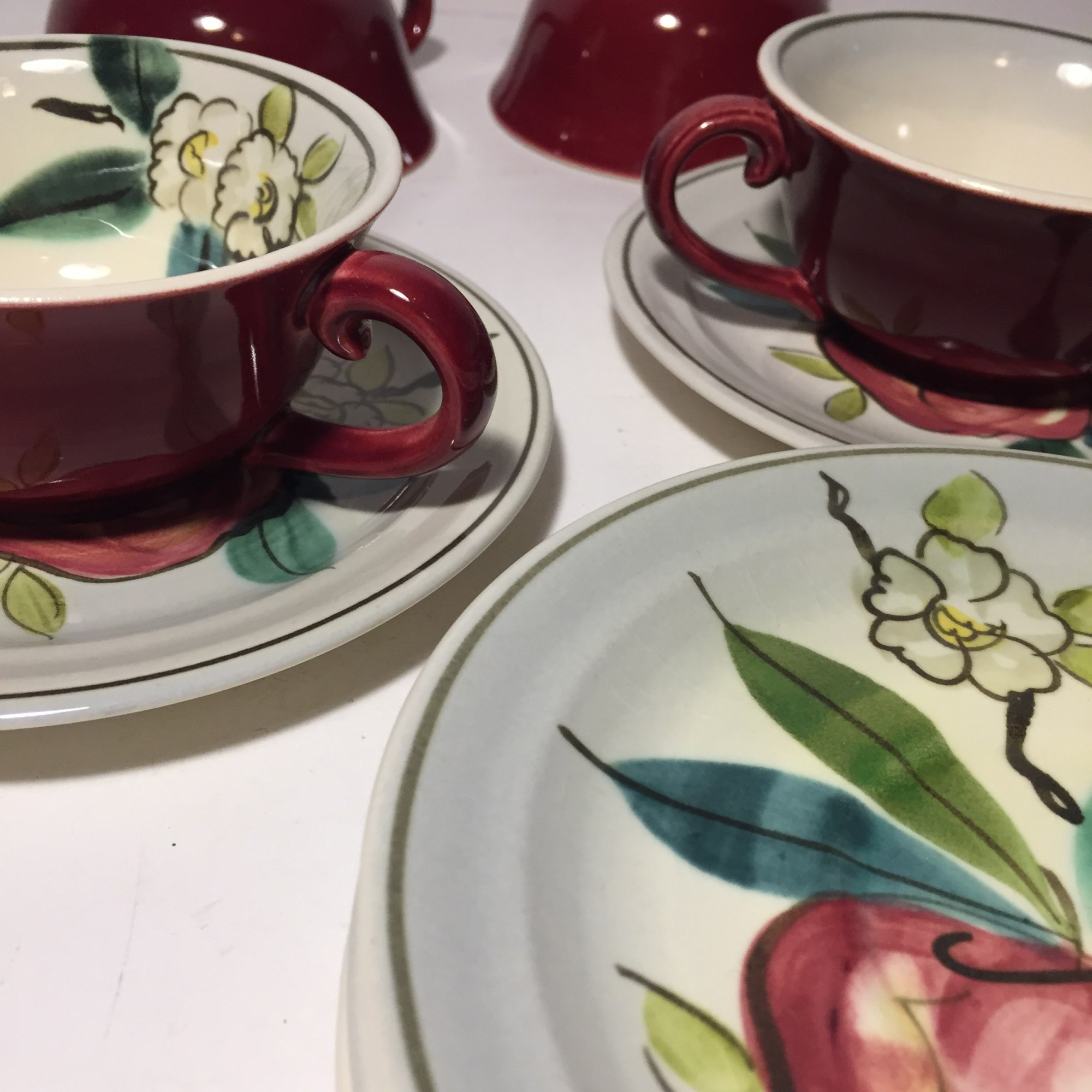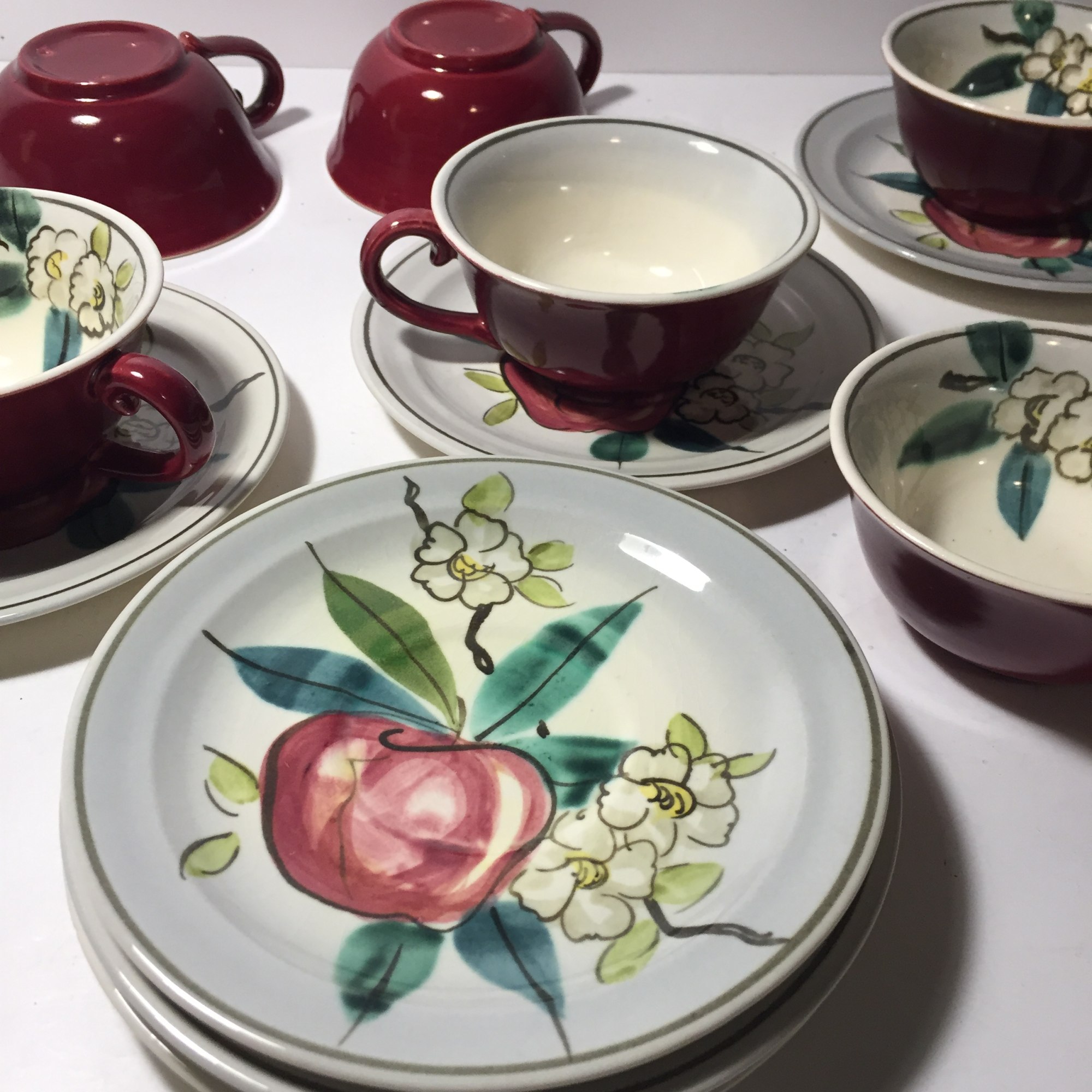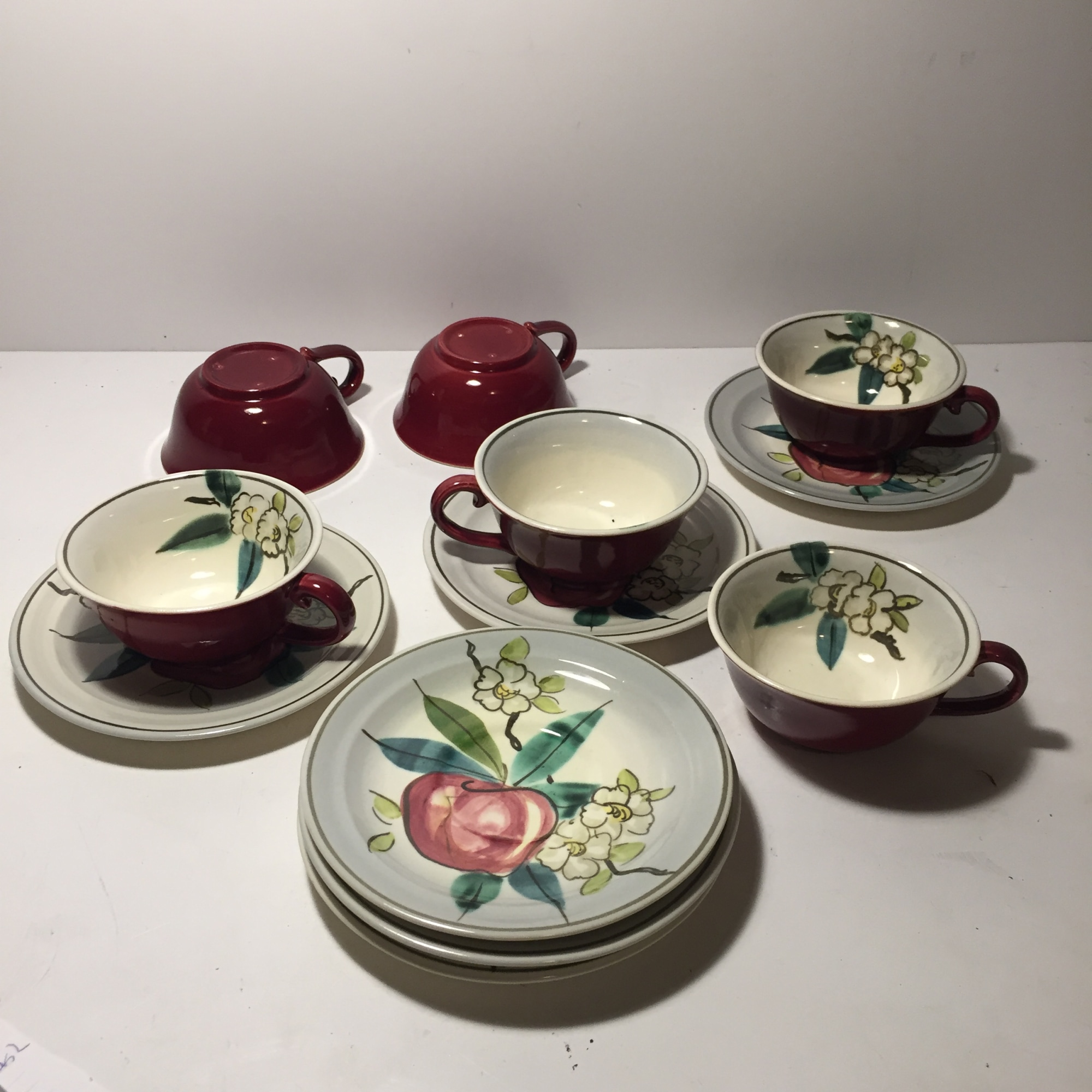 Red Wing apple motif cups and saucers