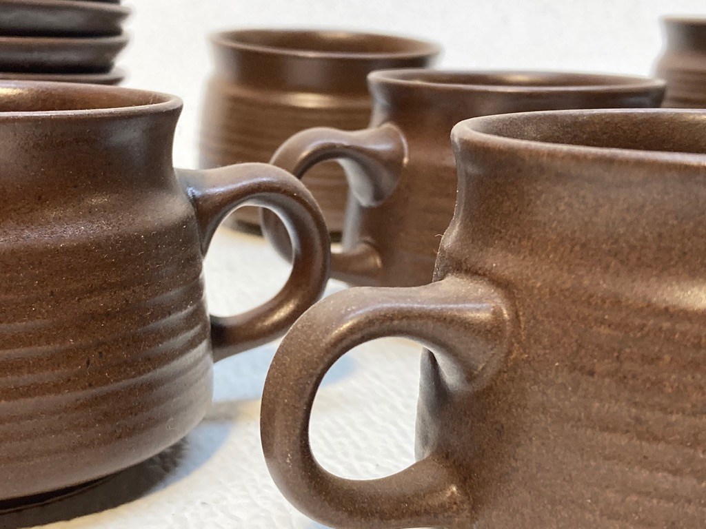 Set of 10 Denby / Langley Mayflower pottery cups and saucers