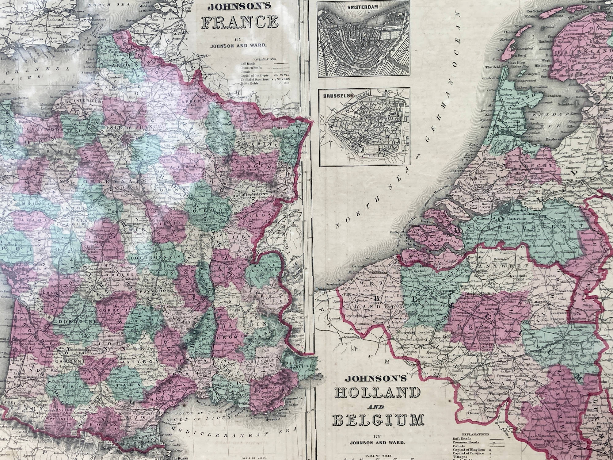 SHRINKWRAPPED early 1864 map of France, Holland, Belgium