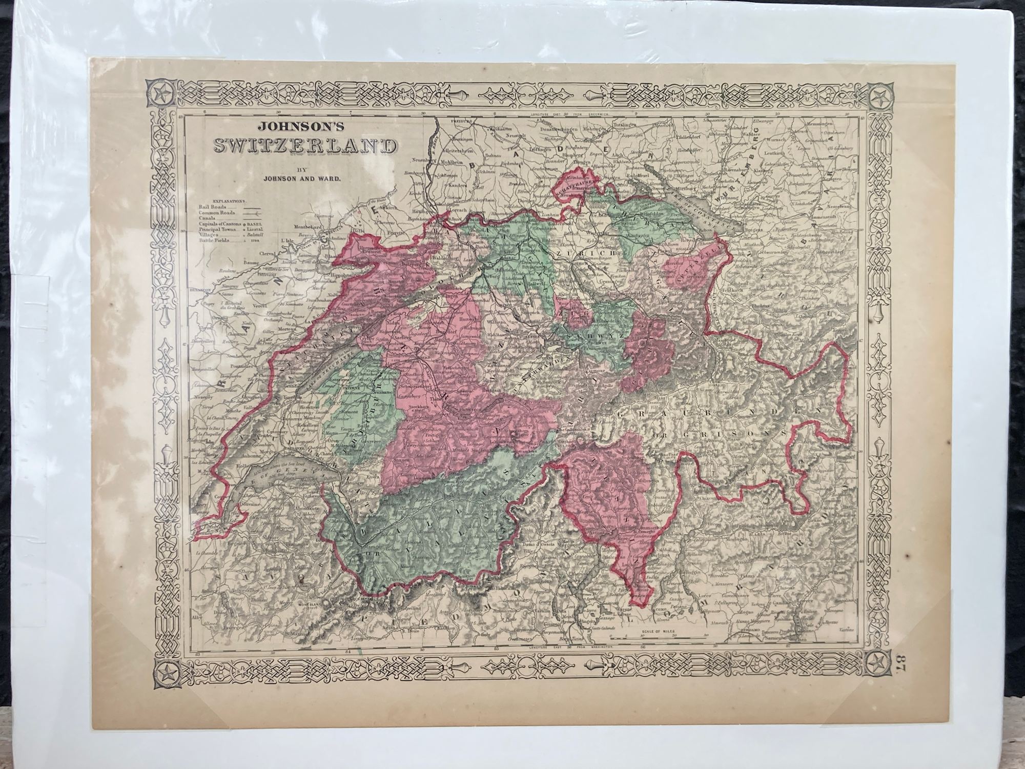 SHRINKWRAPPED early 1864 map of Switzerland