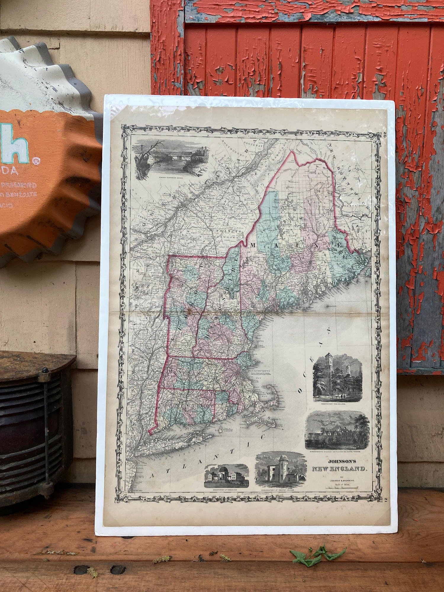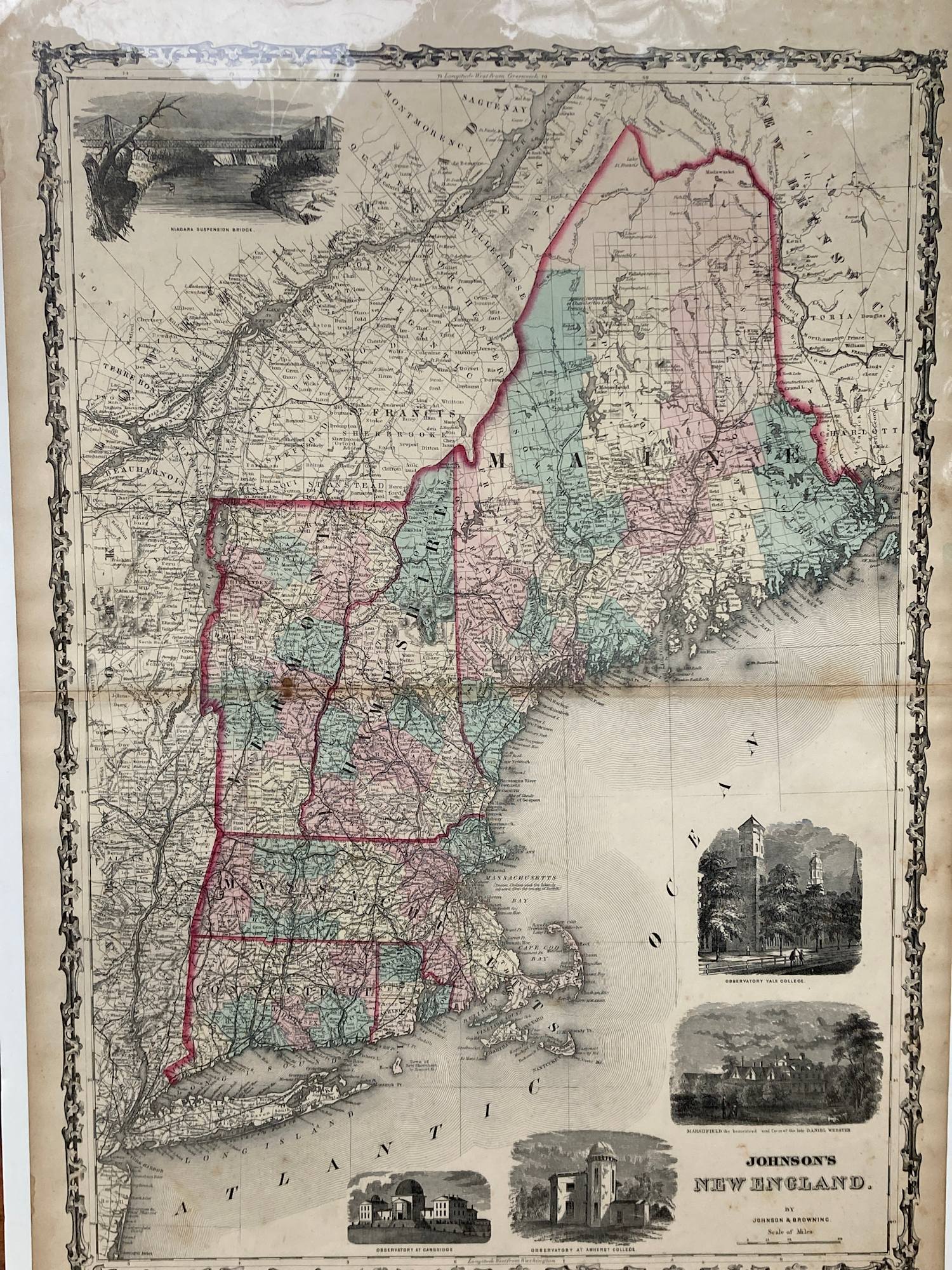 SHRINKWRAPPED early 1872 map of Maine, Vermont and New Hampshire