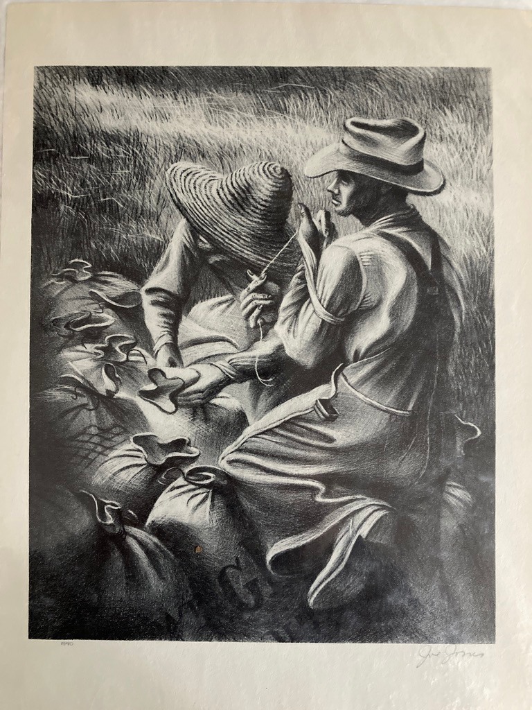 Signed 1931 lithograph "Missouri Wheat Farmers" by Joe Jones