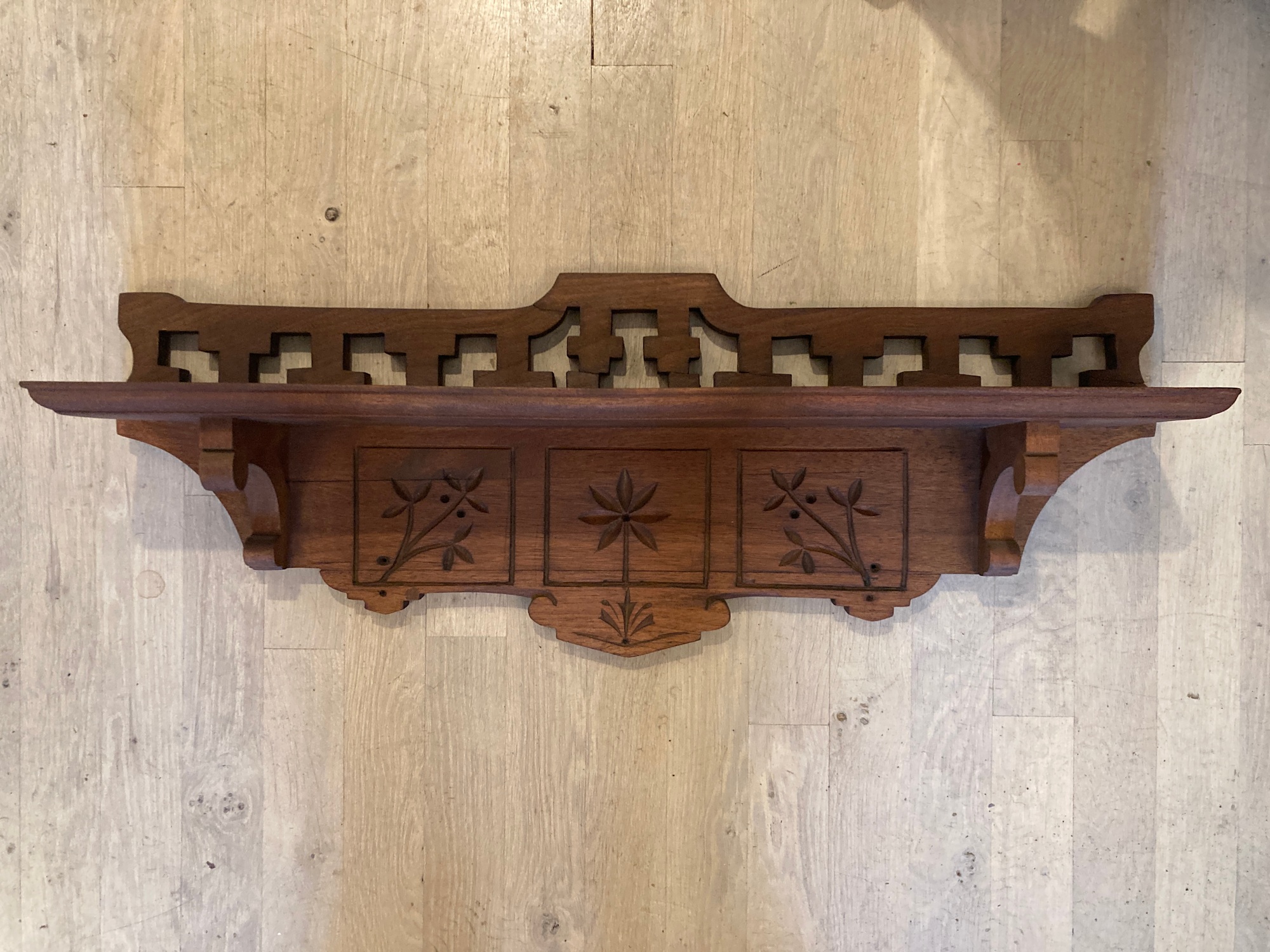 Victorian walnut spoon carved shelf